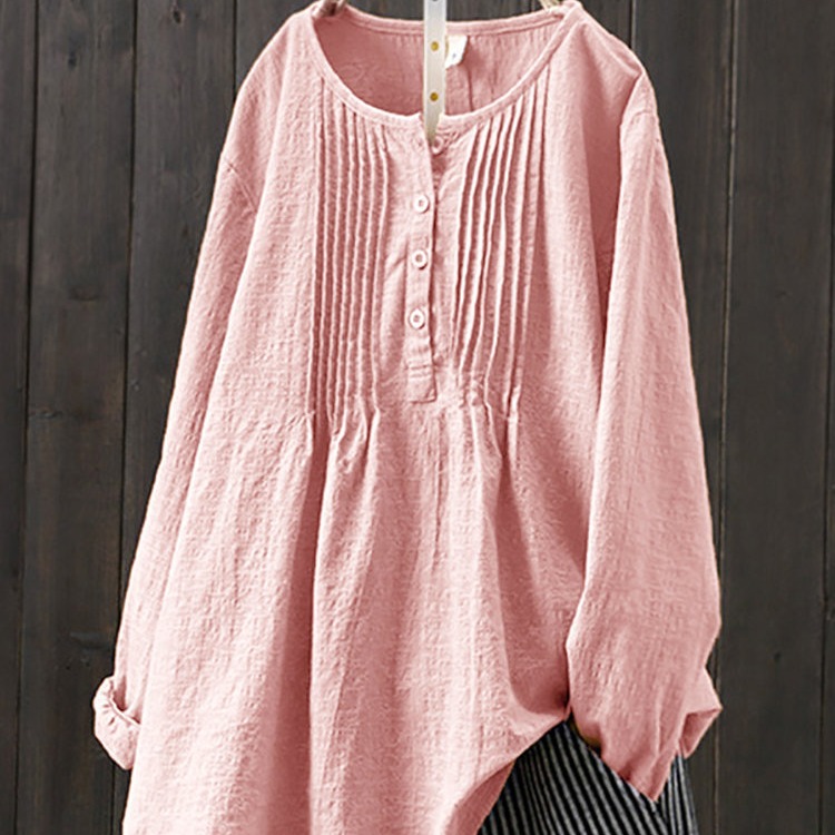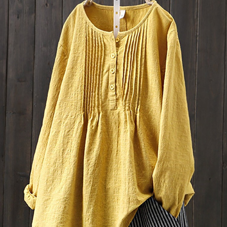 2019 Женская Осенняя рубашка из хлопка и льна, новая популярная однотонная универсальная однотонная женская рубашка с длинными рукавами