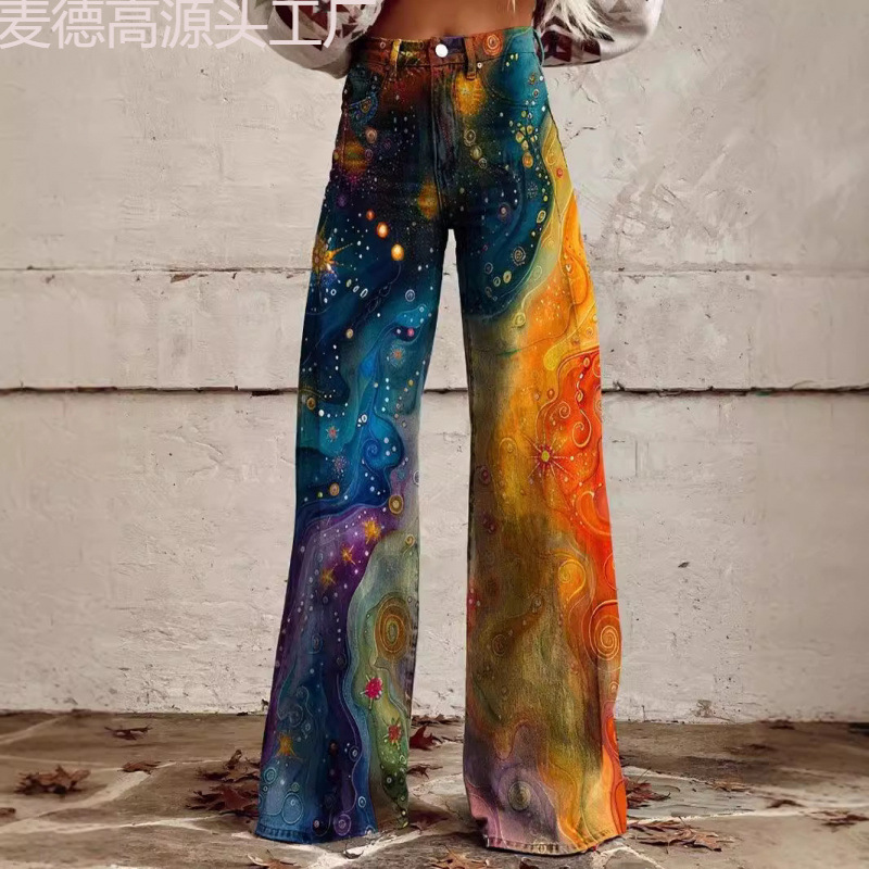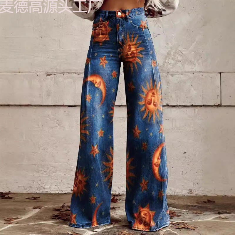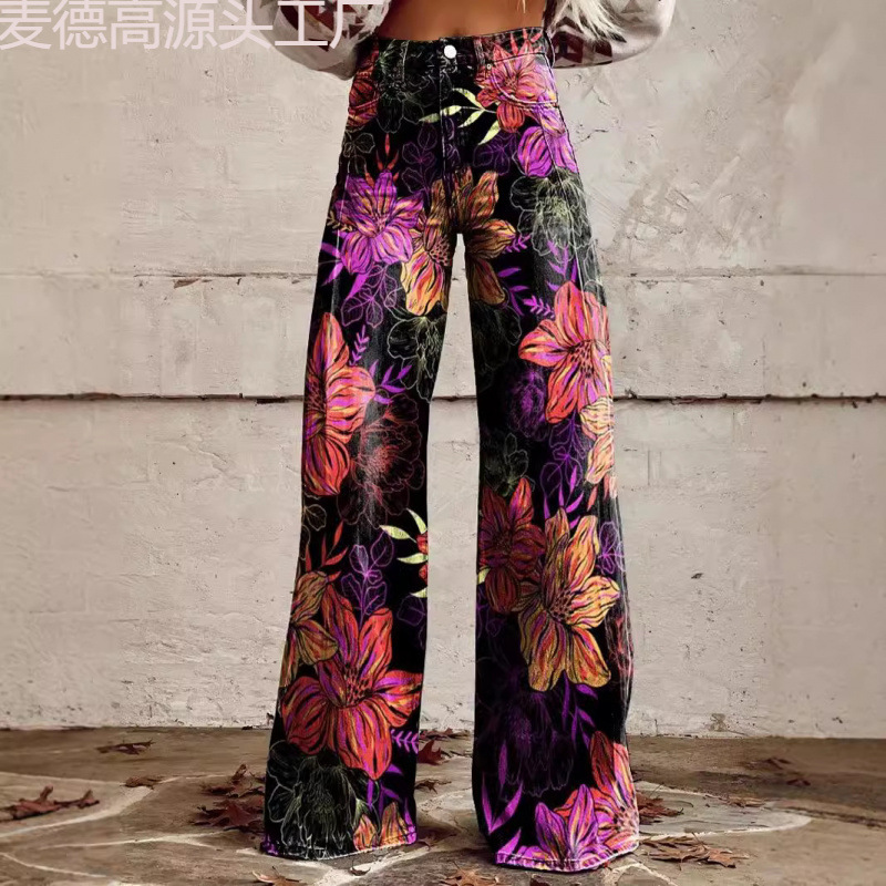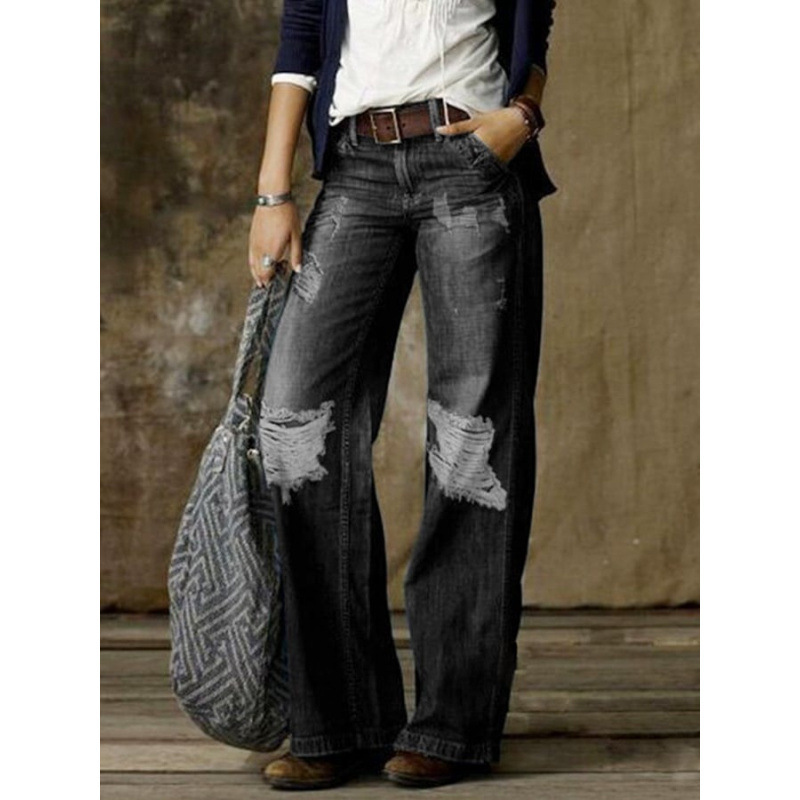 Главная страница > Внешняя торговля, трансграничная поставка AliExpress, брюки-клеш, женские брюки больших размеров, тонкие джинсы-имитация, поставки от производителя с широкими штанинами.