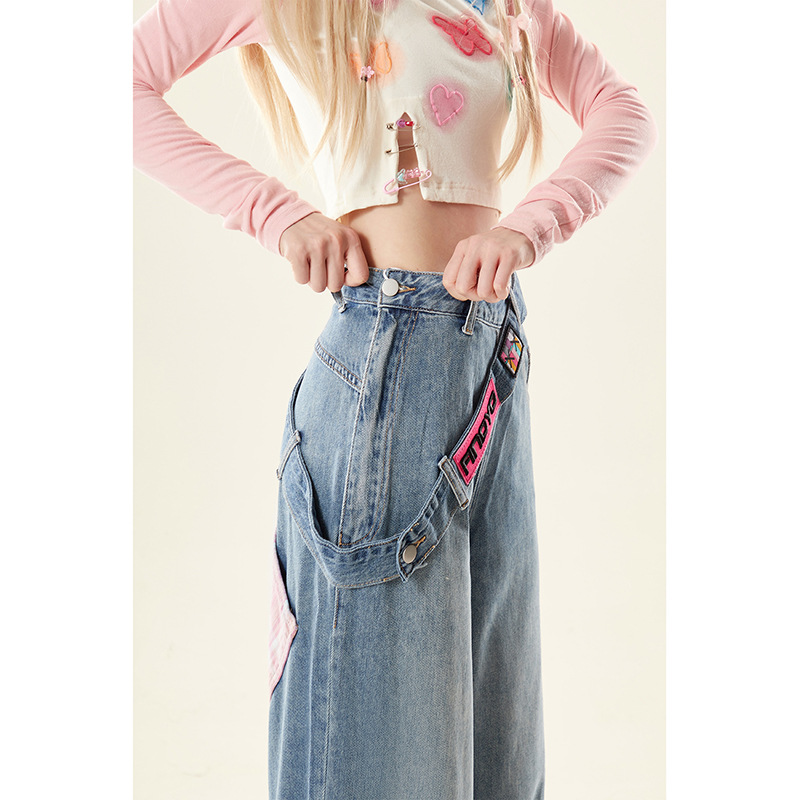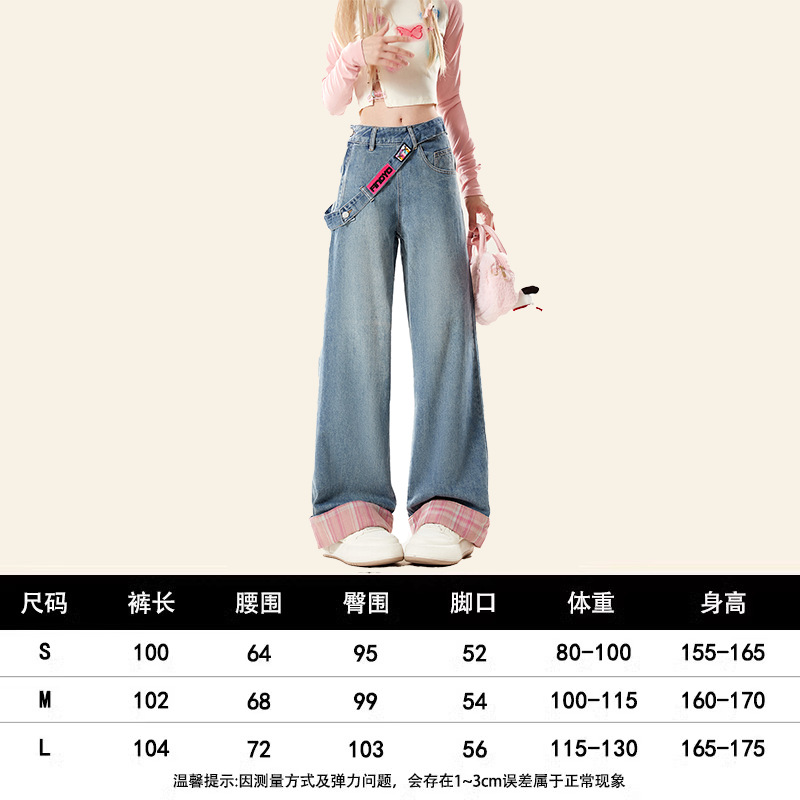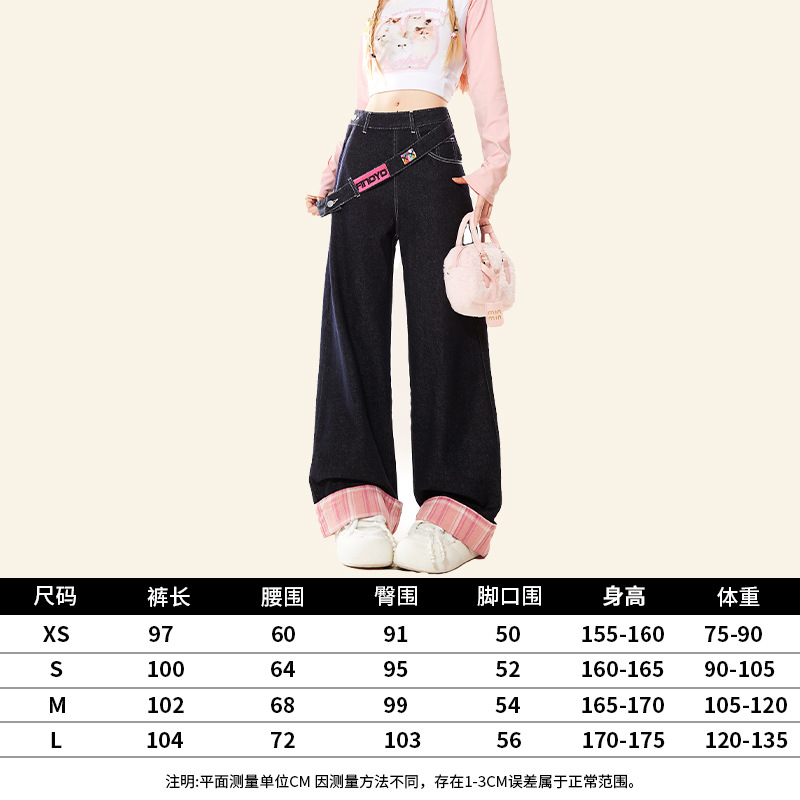 Натуральные вяжущие американские джинсы на молнии весной и осенью женские широкие ноги свободные маленькие зимние бархатные брюки