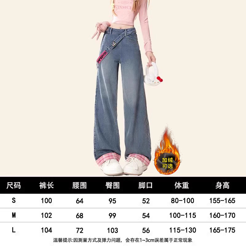 Главная страница > Натуральные вяжущие американские джинсы на молнии весной и осенью женские широкие ноги свободные маленькие зимние бархатные брюки