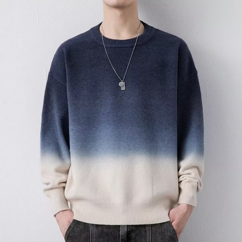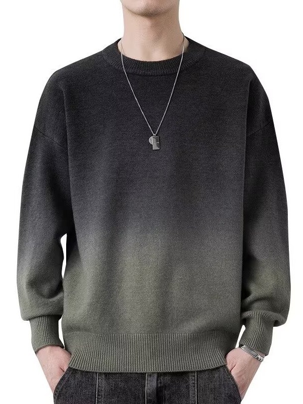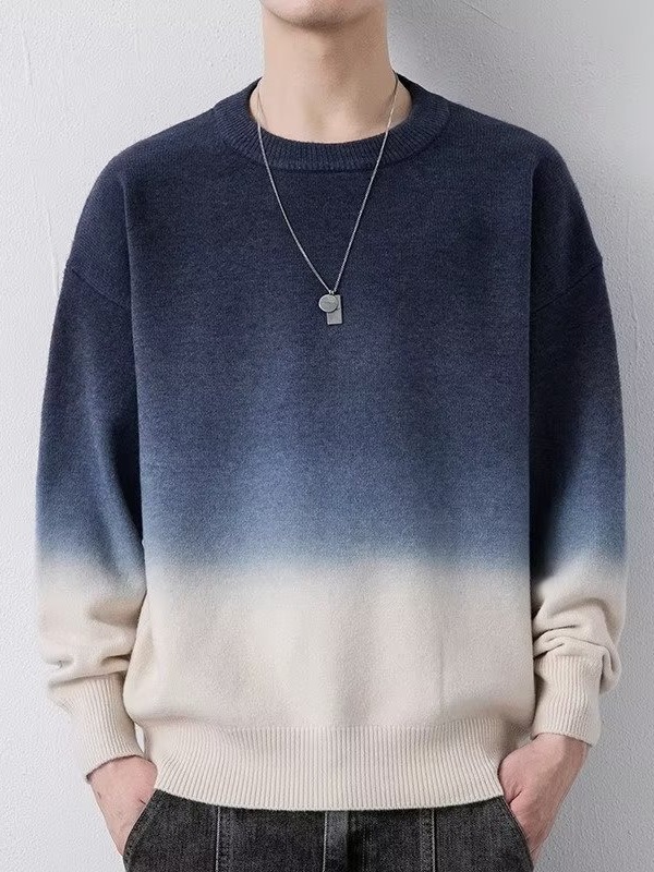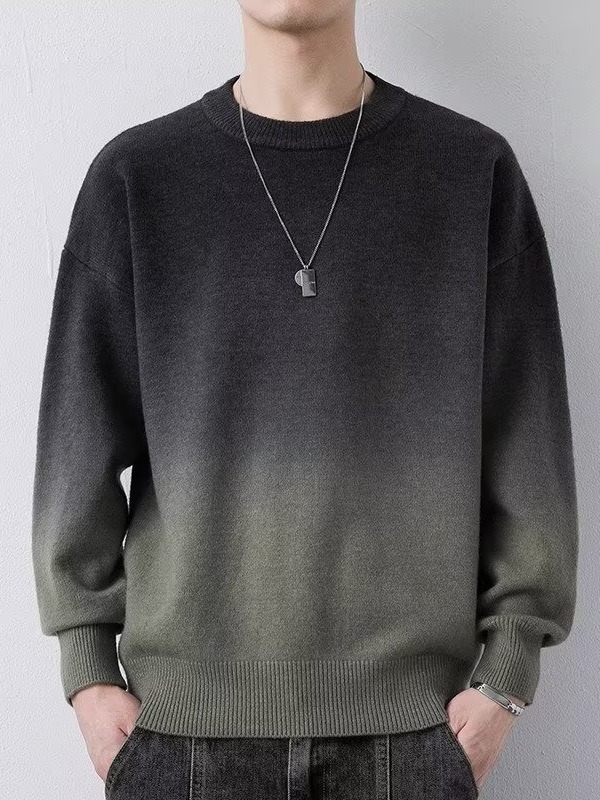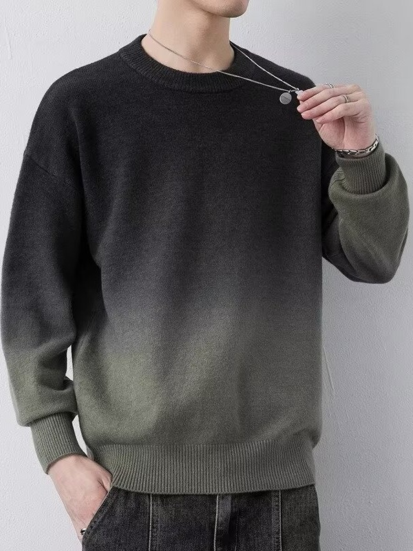 Главная страница > 2023 осенне-зимний модный свитер с круглым вырезом градиентного цвета, Мужская свободная теплая верхняя одежда, модный универсальный красивый свитер, модный