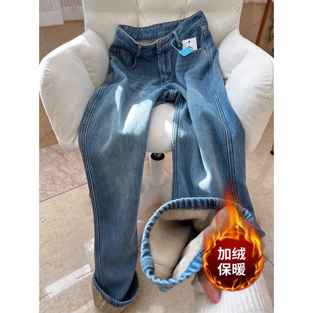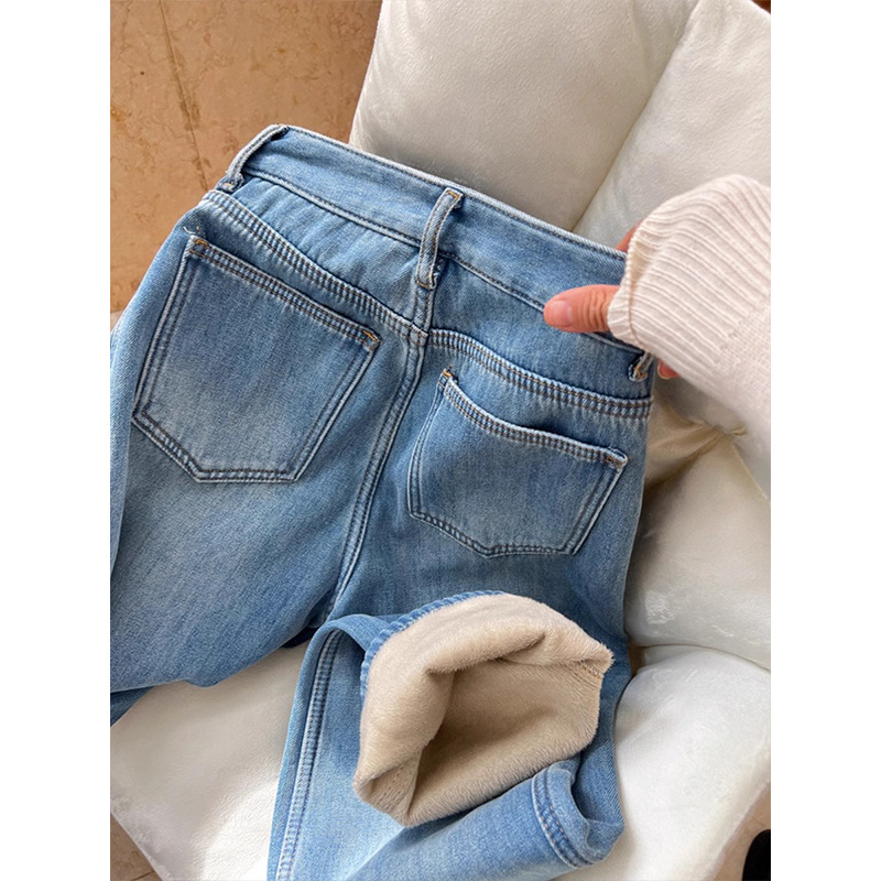 Главная страница > Синяя высокая талия плюс бархатная узкая версия прямых джинсов женские осенние и зимние новые теплые пригородные дикие тонкие штаны