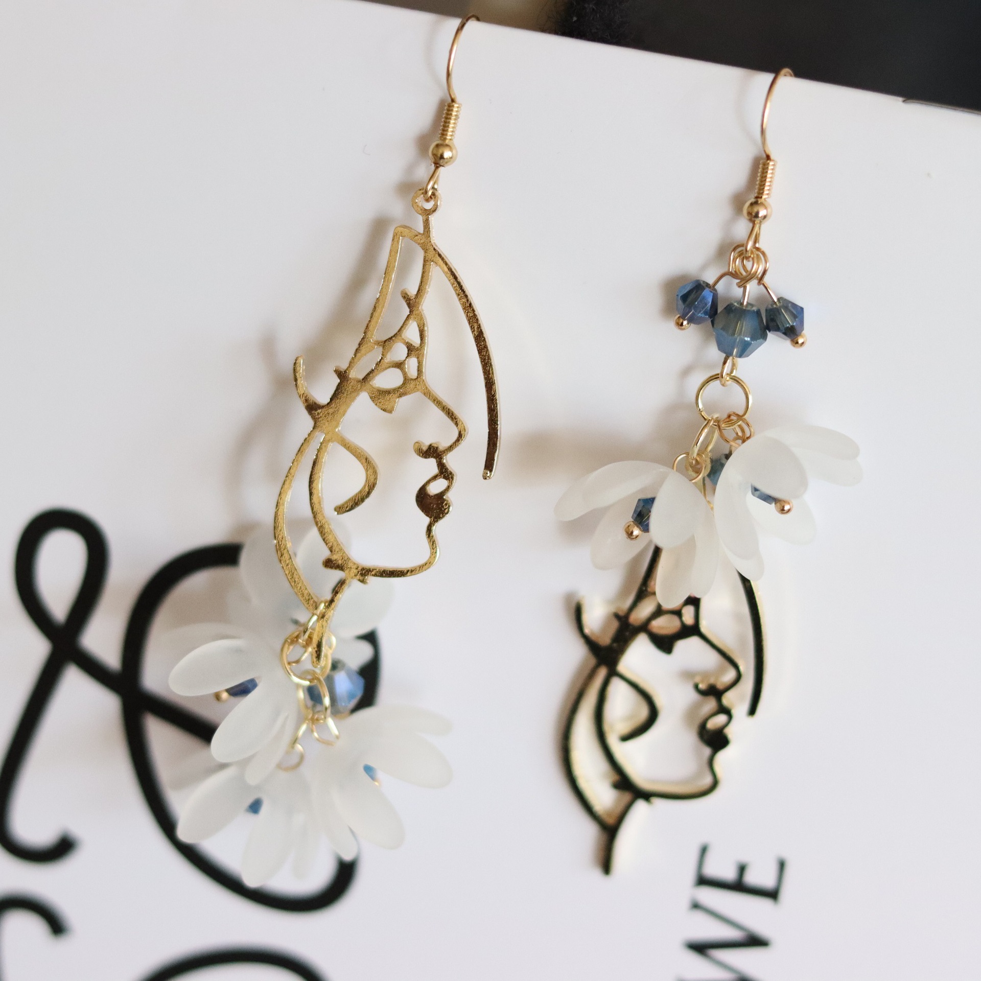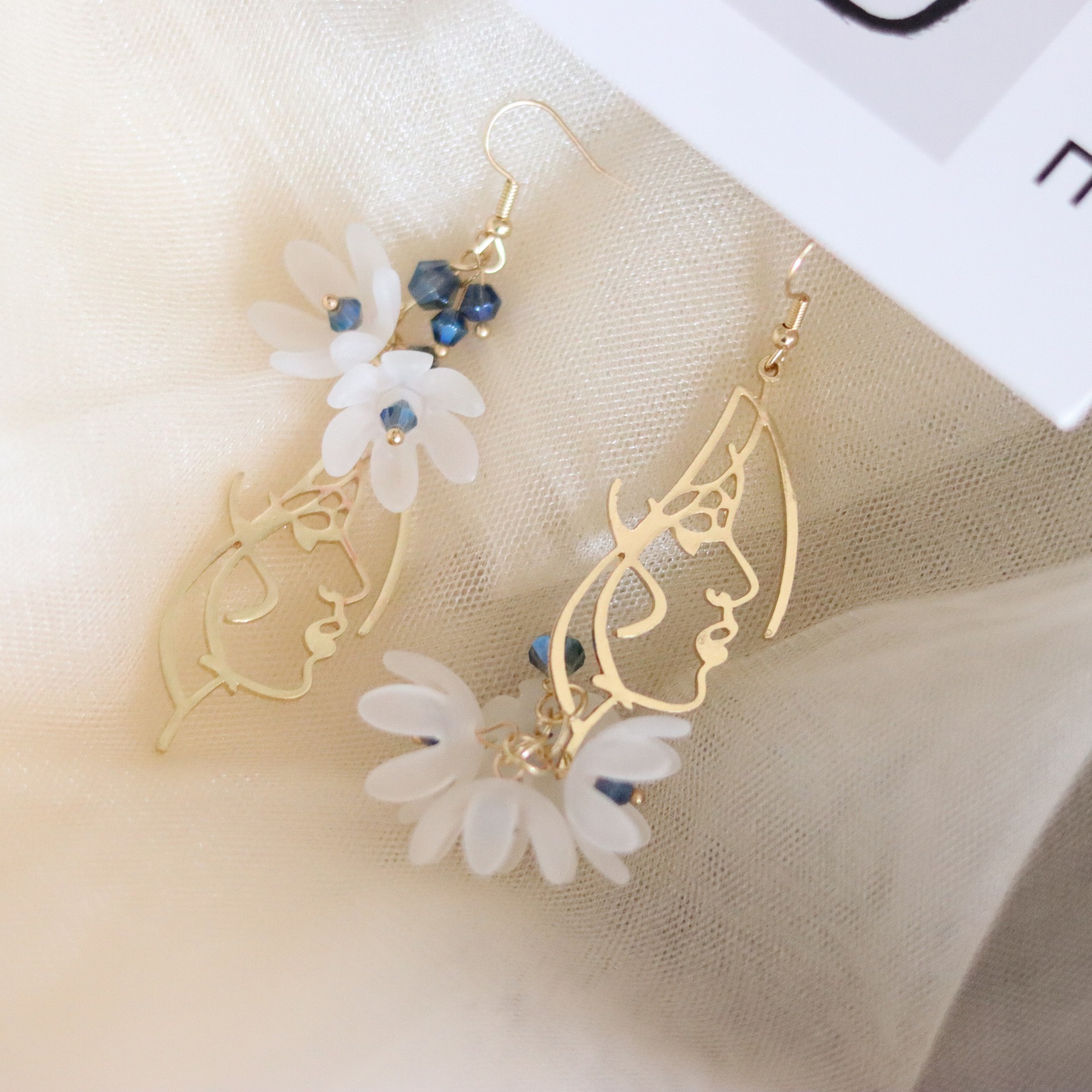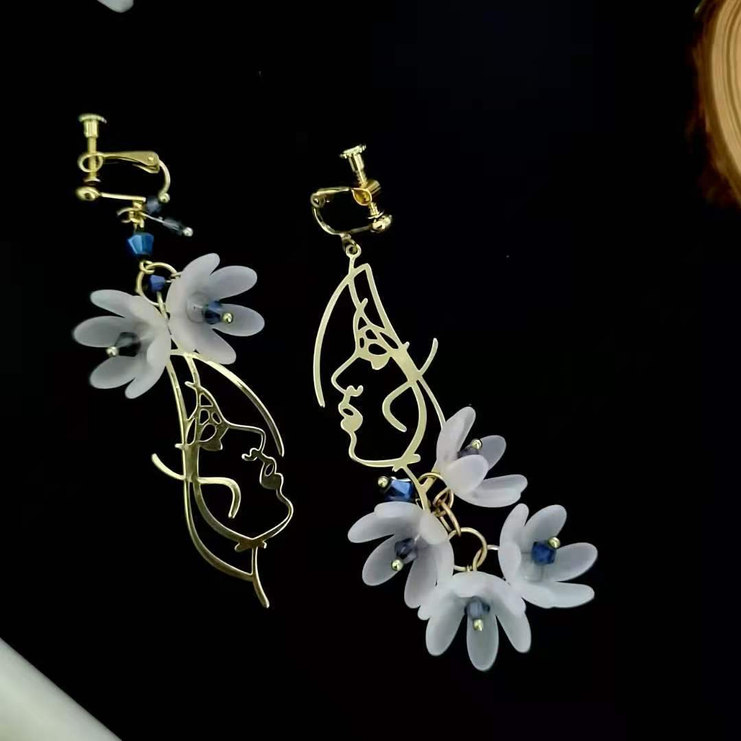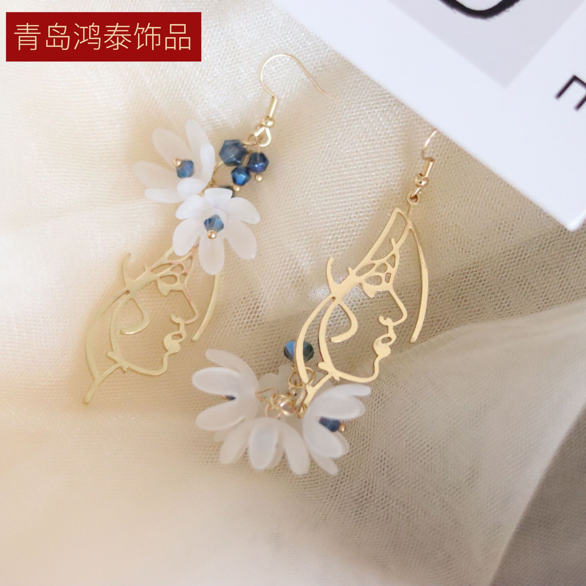 Главная страница > S925 Корейская версия головы Лицо тонкие серьги длинные модные Асимметричные хрустальные цветы серьги-Крючки для ушей женские 058