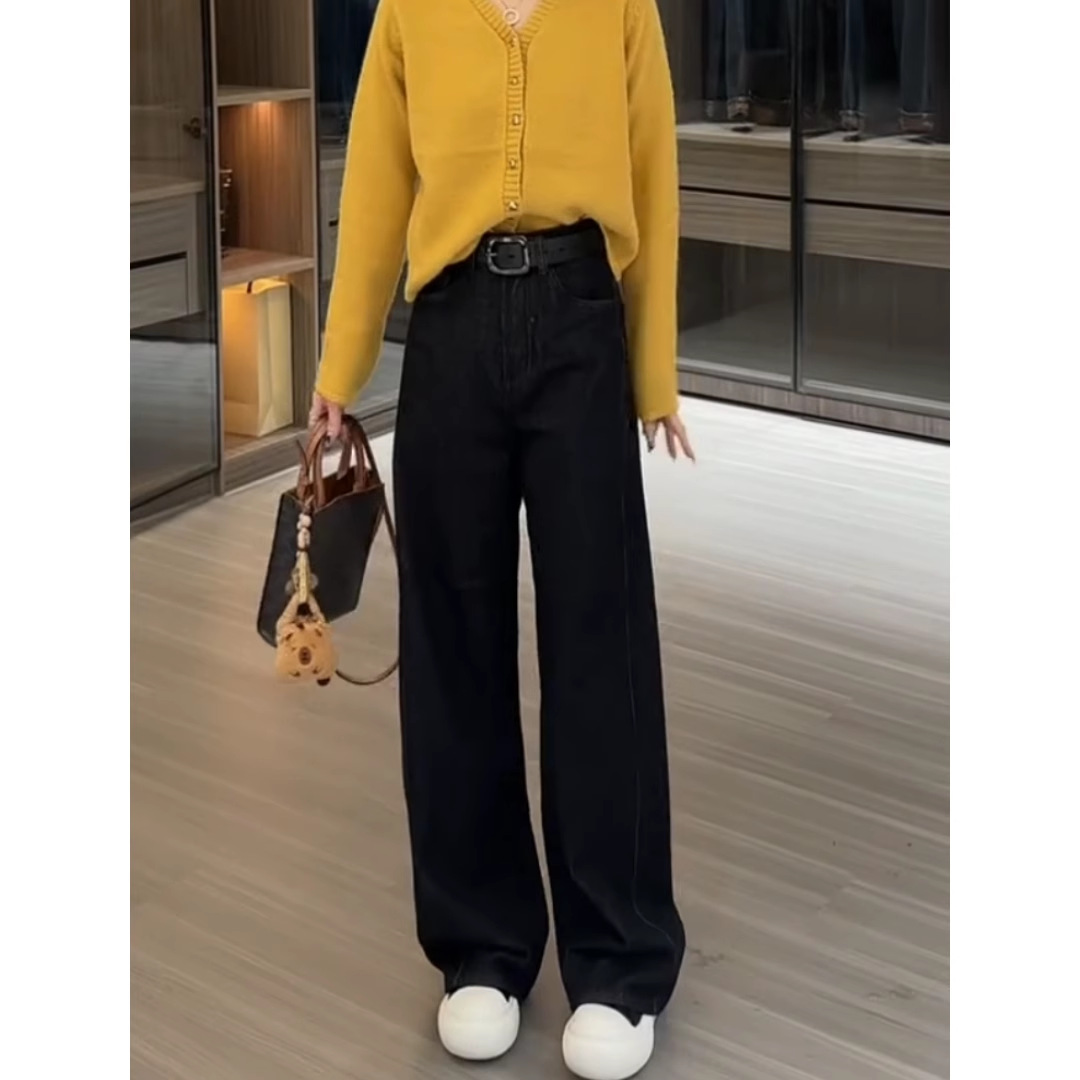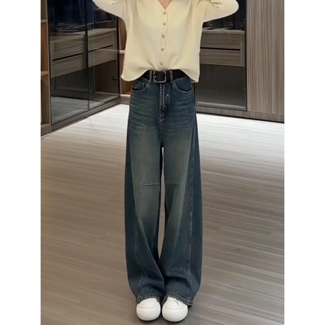 Большой размер узкая версия американских джинсов широкие ножки женские 2024 осень новая жирная мм свободная высокая талия тонкая широкая нога брюки