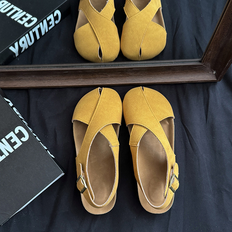 Главная страница > Женские летние босоножки с перекрестными ремешками и вырезами, новинка 2025 года, на толстой подошве, в ретро стиле Birkenstock, пляжные римские сандалии