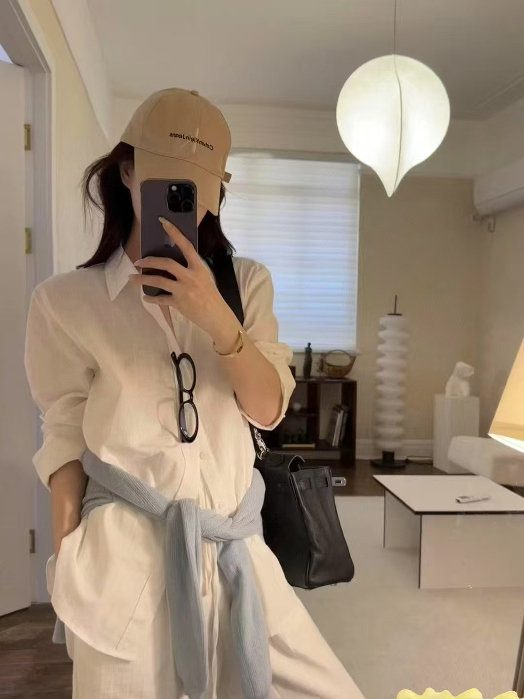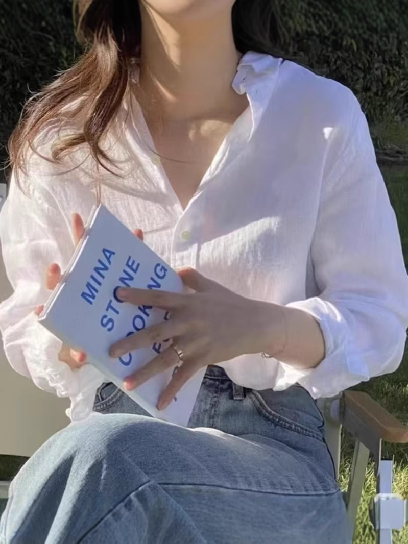 Главная страница > Женский стиль! В наличии, Линер рекомендует свободную льняную рубашку в стиле «олд мани», дышащую, солнцезащитную, с отложным воротником и вышивкой в виде пони.