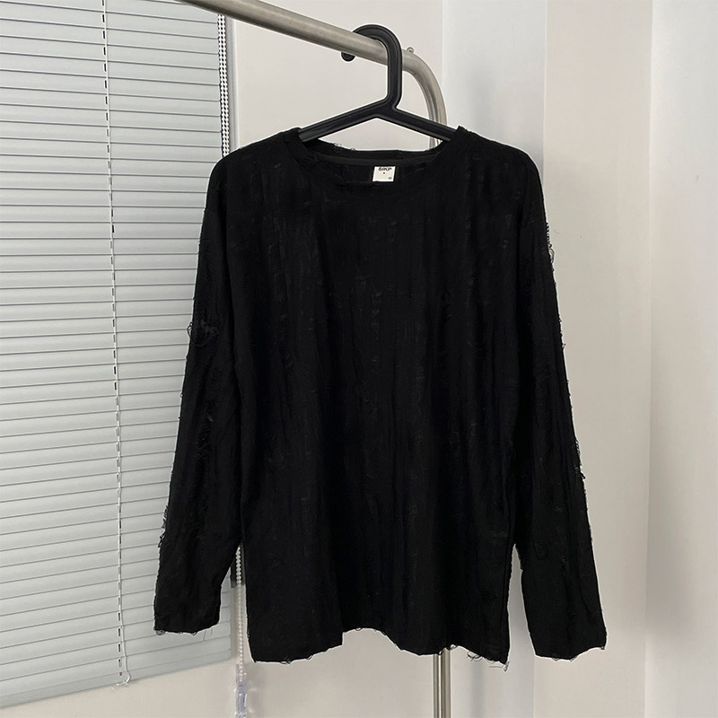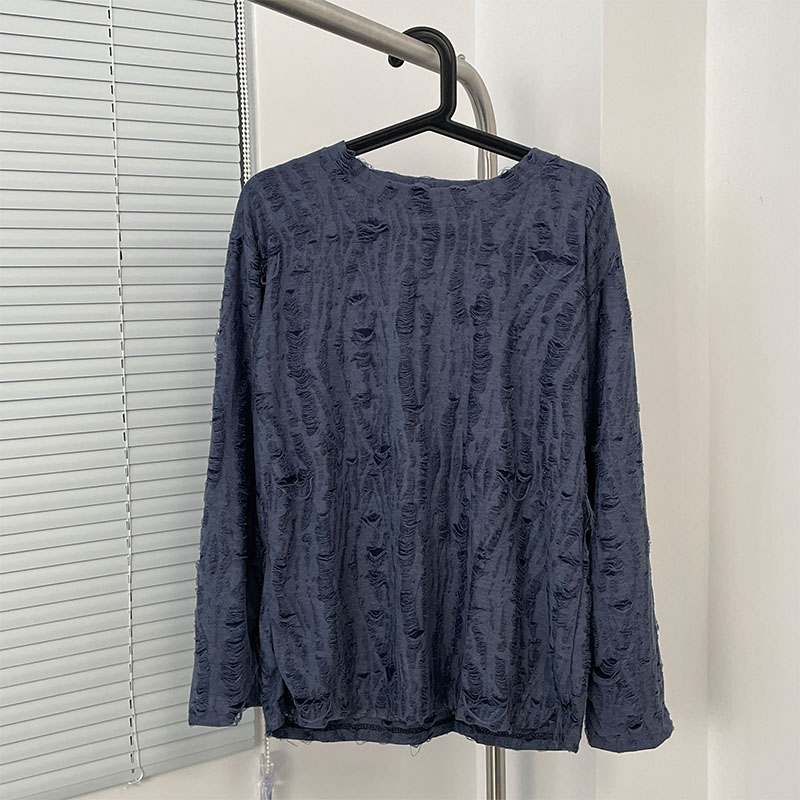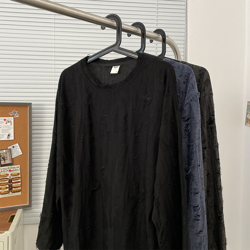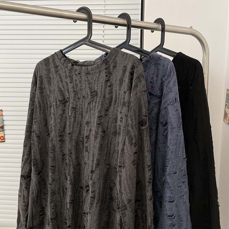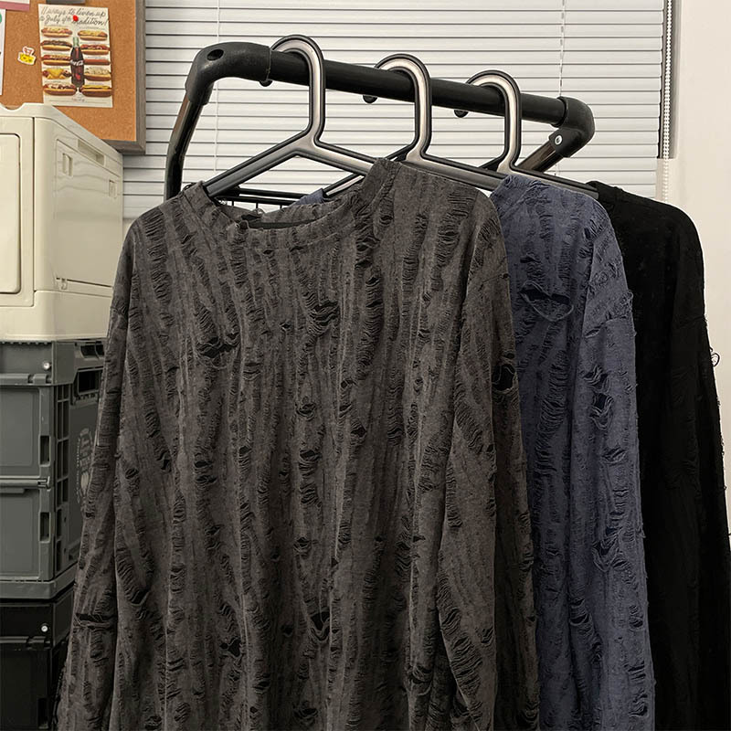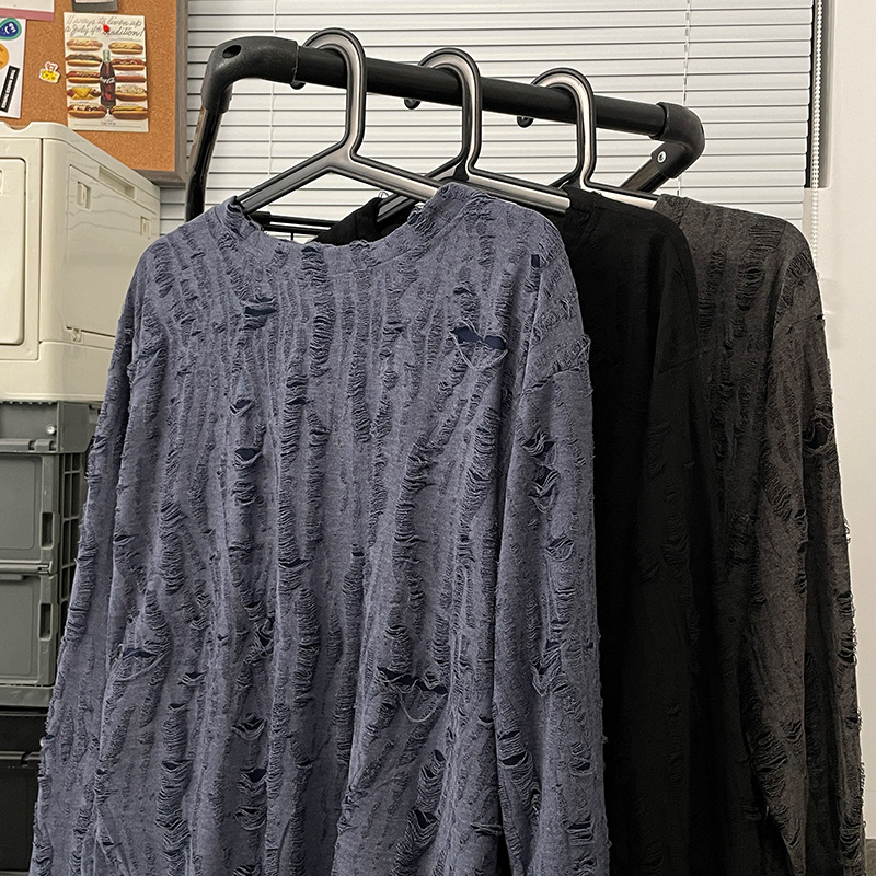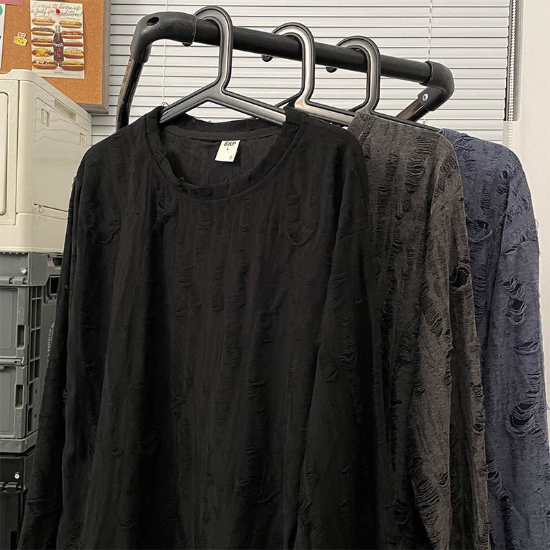 Главная страница > Весенне-осенняя рваная футболка с длинными рукавами, Мужская футболка с круглым вырезом, японский ретро, американский Повседневный модный бренд, хип-хоп, национальная мода, Молодежный топ