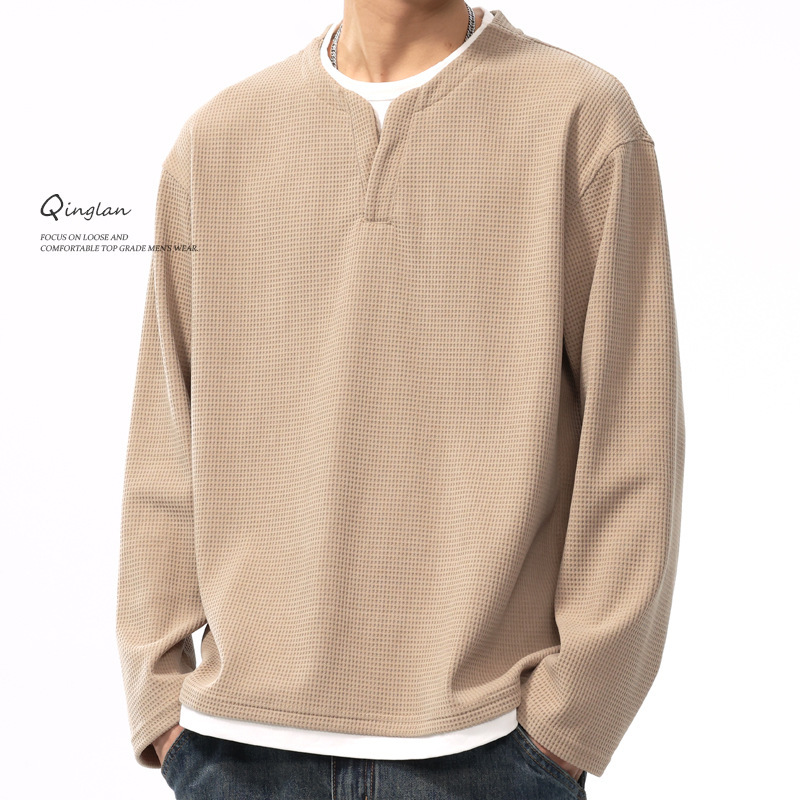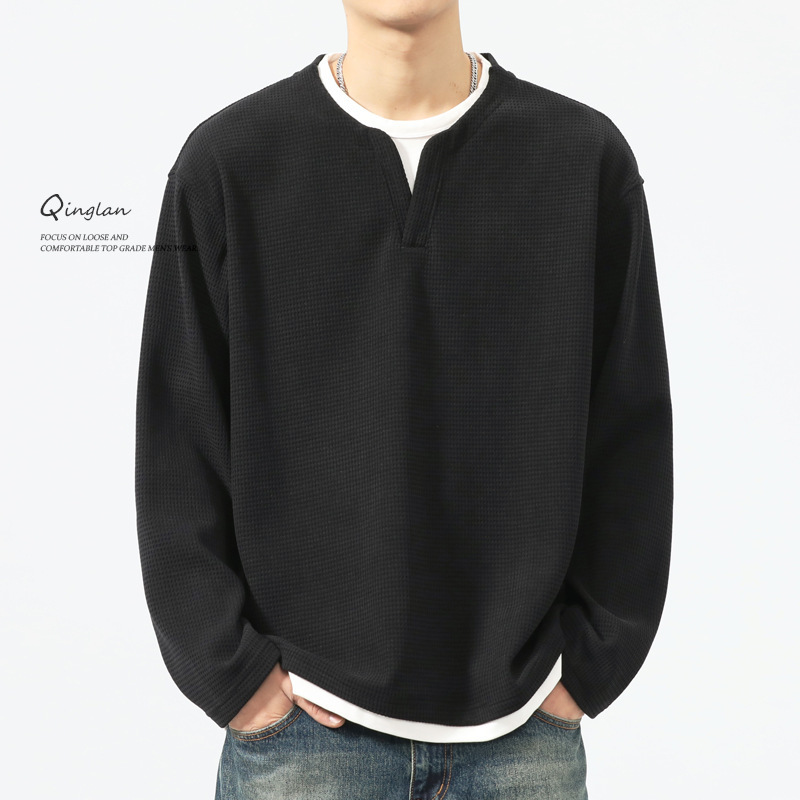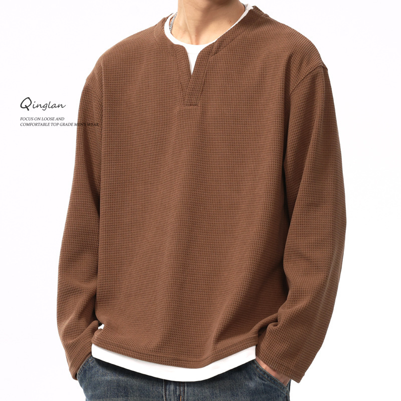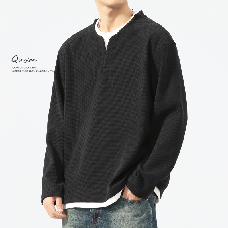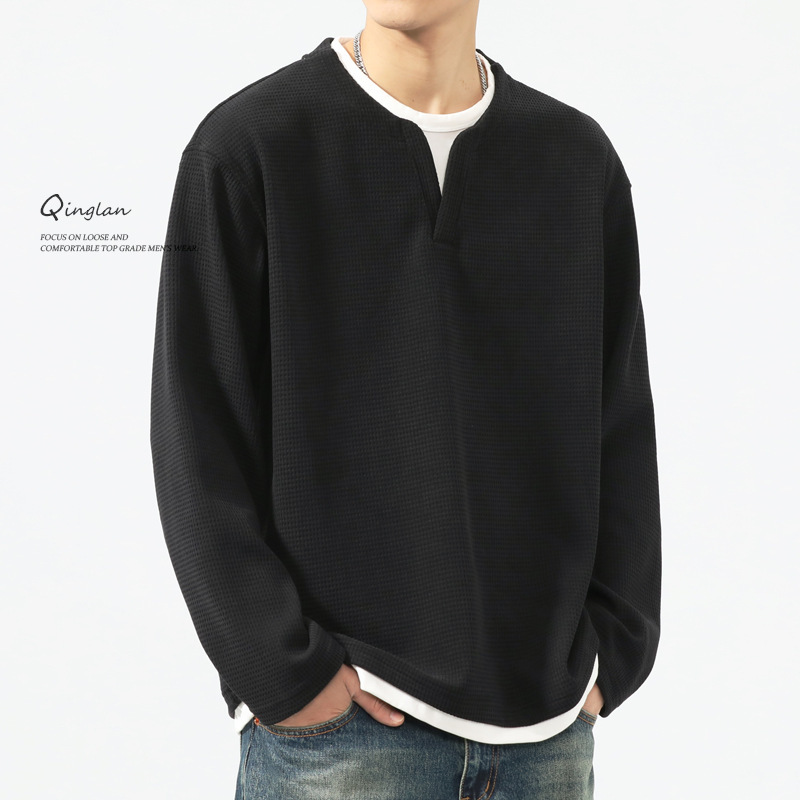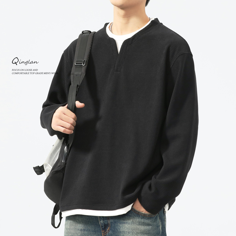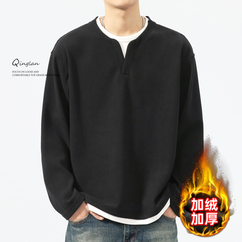 Главная страница > Тяжелые поддельные две футболки с длинными рукавами мужской свободный повседневный топ с плюшевым толстым приливом