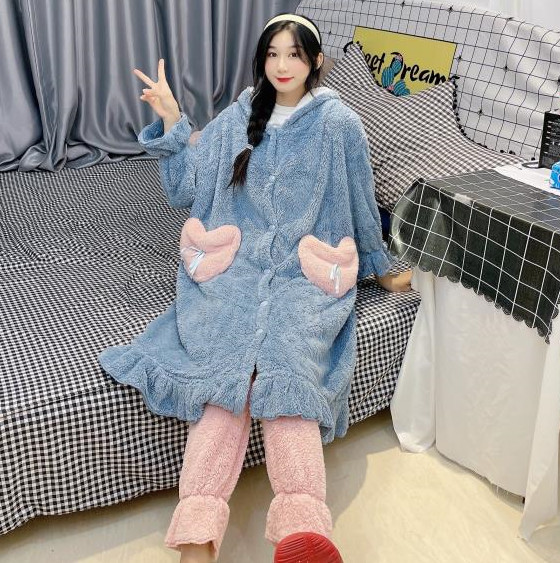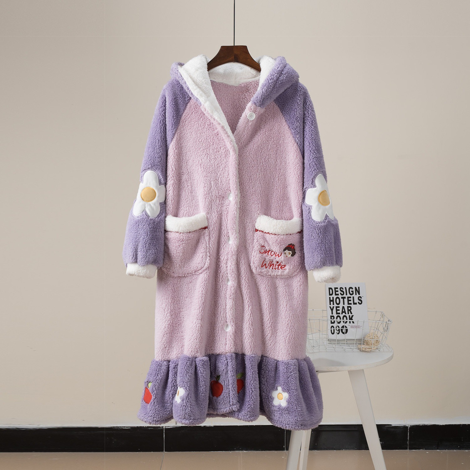 Главная страница > Ночная рубашка с фиолетовой уткой, длинный халат, зимний женский халат с облачками и собакой, коралловый флис, клубника, маленький Винни-Пух, домашняя одежда, пижамный комплект