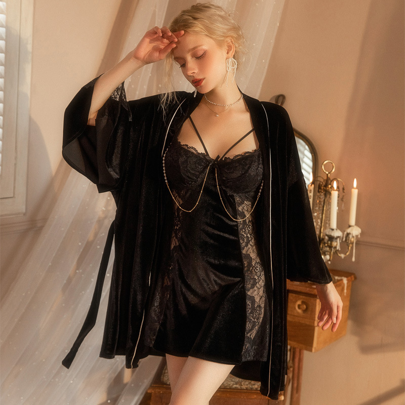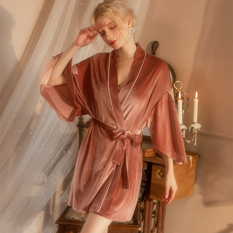 Главная страница > Осенне-зимний сексуальный Золотой бархатный халат, женский халат, домашняя одежда, ночная рубашка Джокера, с длинным рукавом, доступен для продажи 12302 снаружи