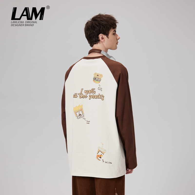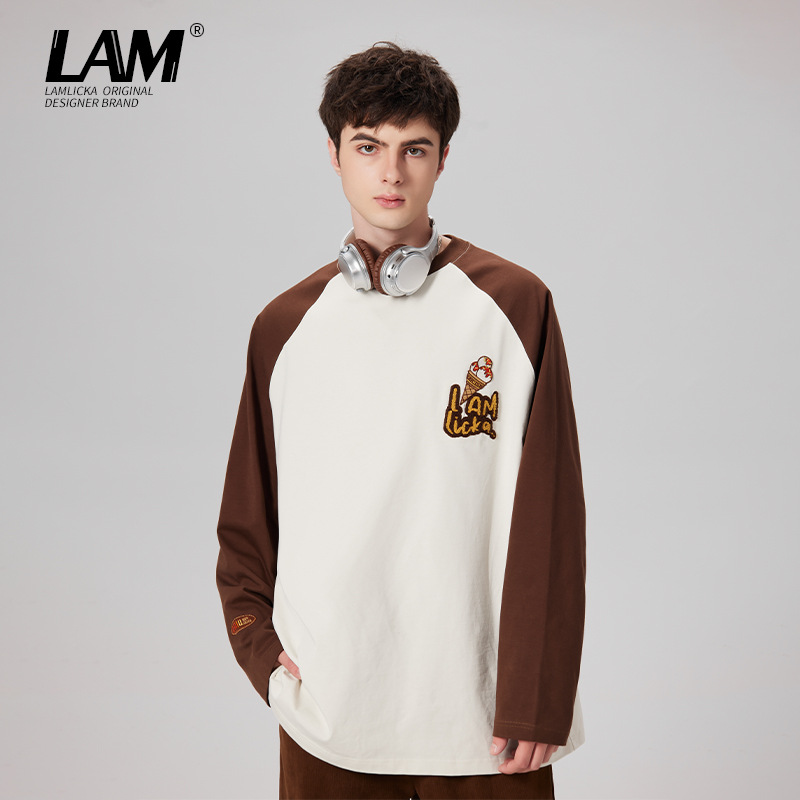 Главная страница > Lamlicka рукава с длинным рукавом футболка мужской национальный прилив полотенцесушитель тонкая сшитая, контрастная цветная свободная рубашка с круглым вырезом