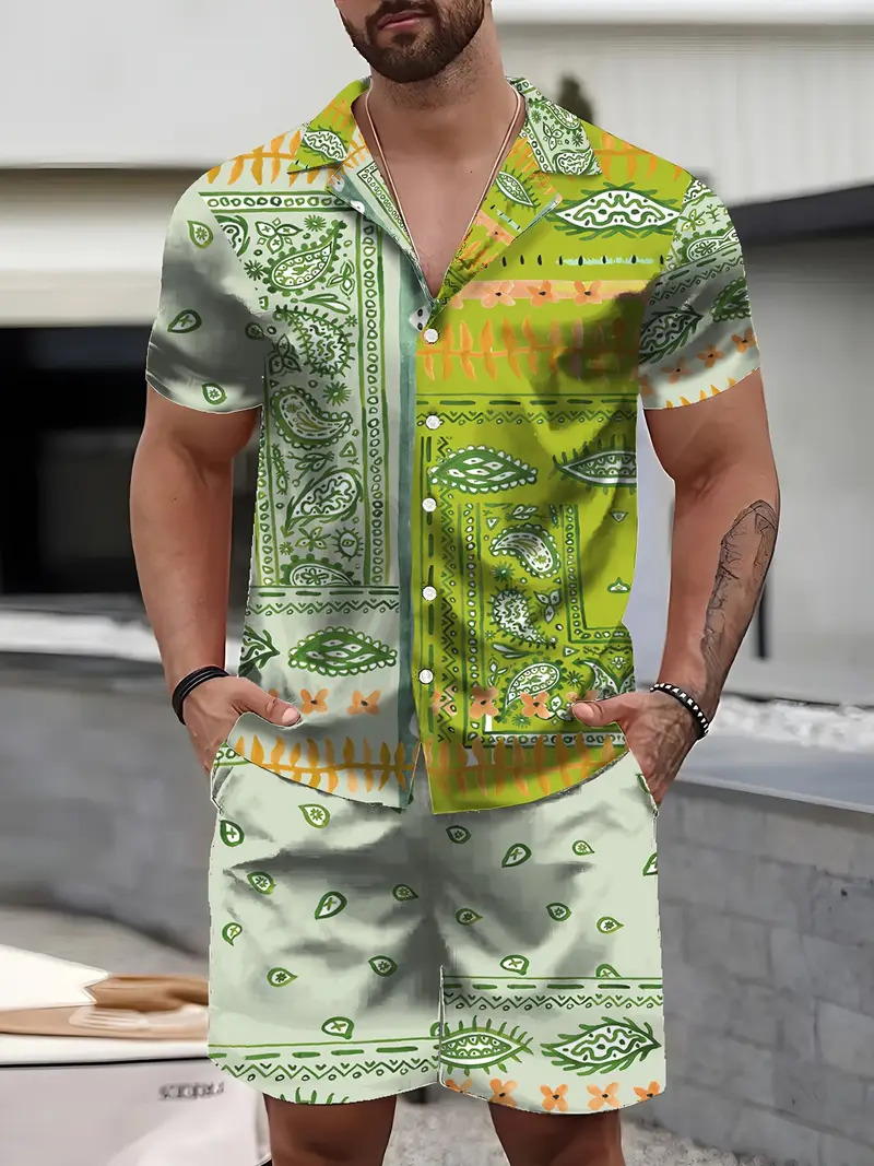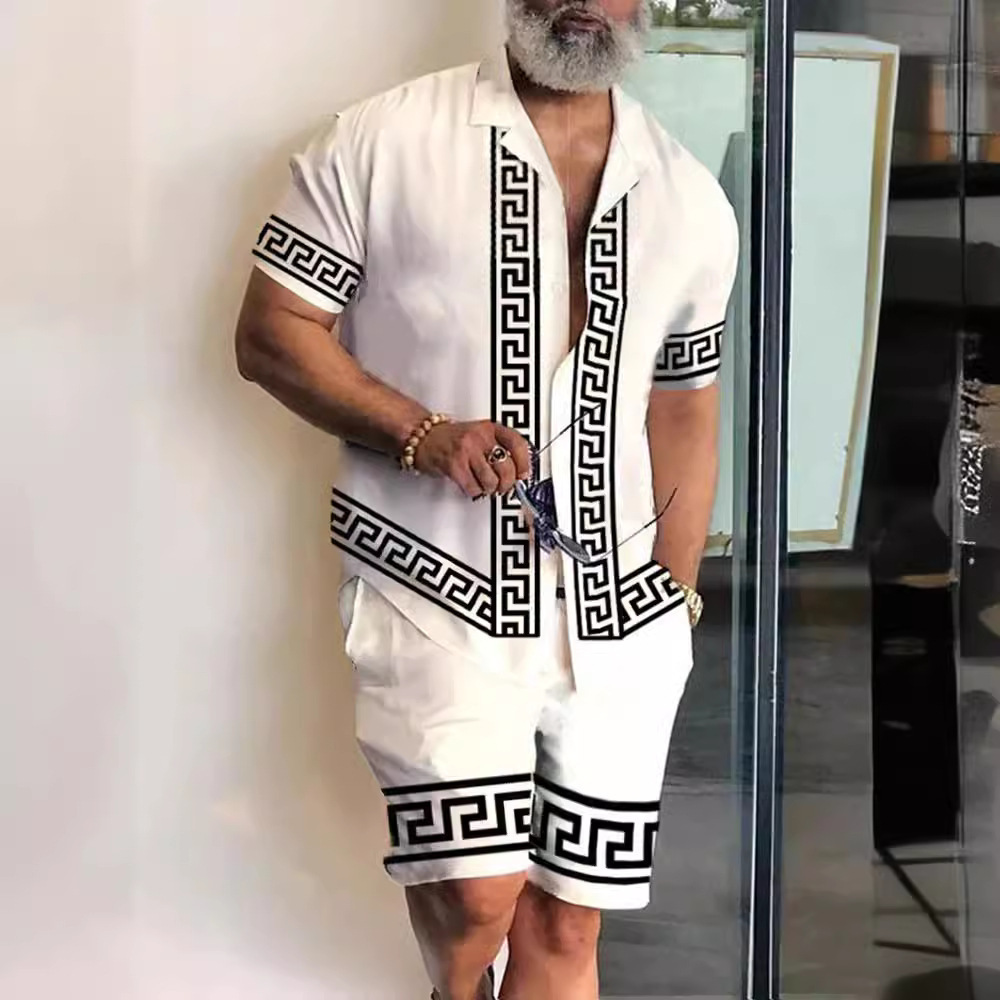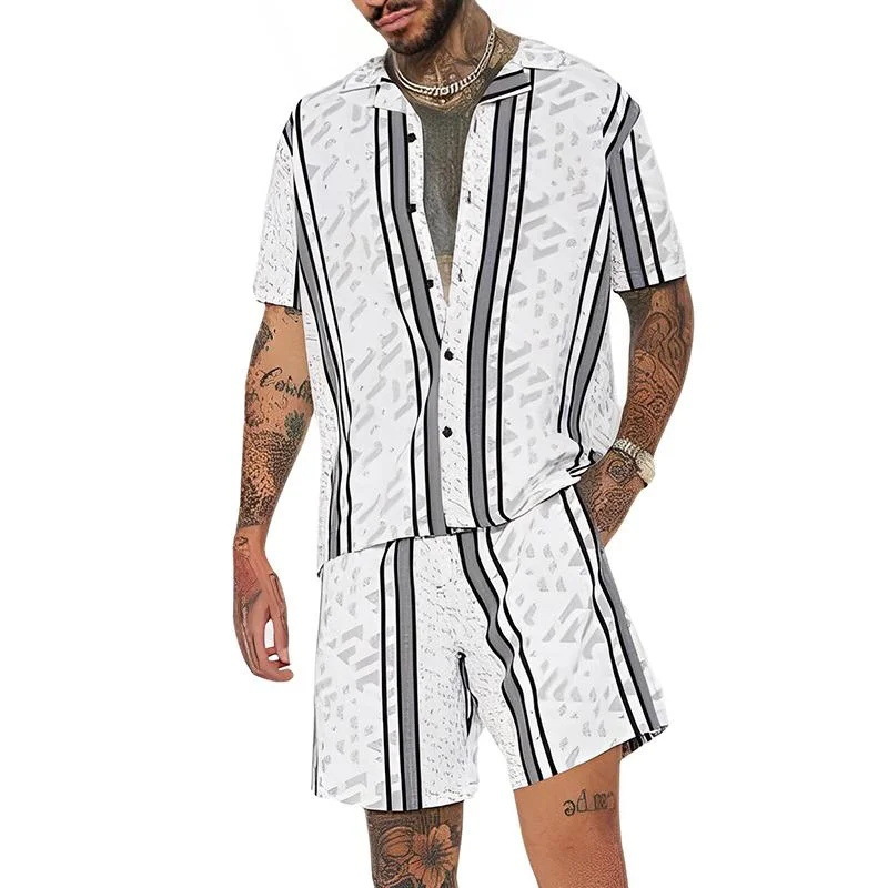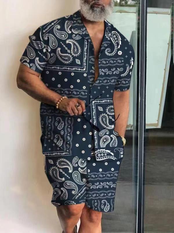 Мужские гавайские рубашки с коротким рукавом шорты набор горячих продаж трансграничный 3D-принт модный красочный узор для отдыха