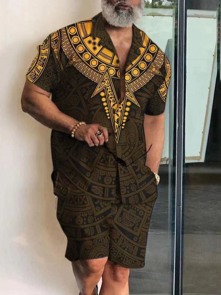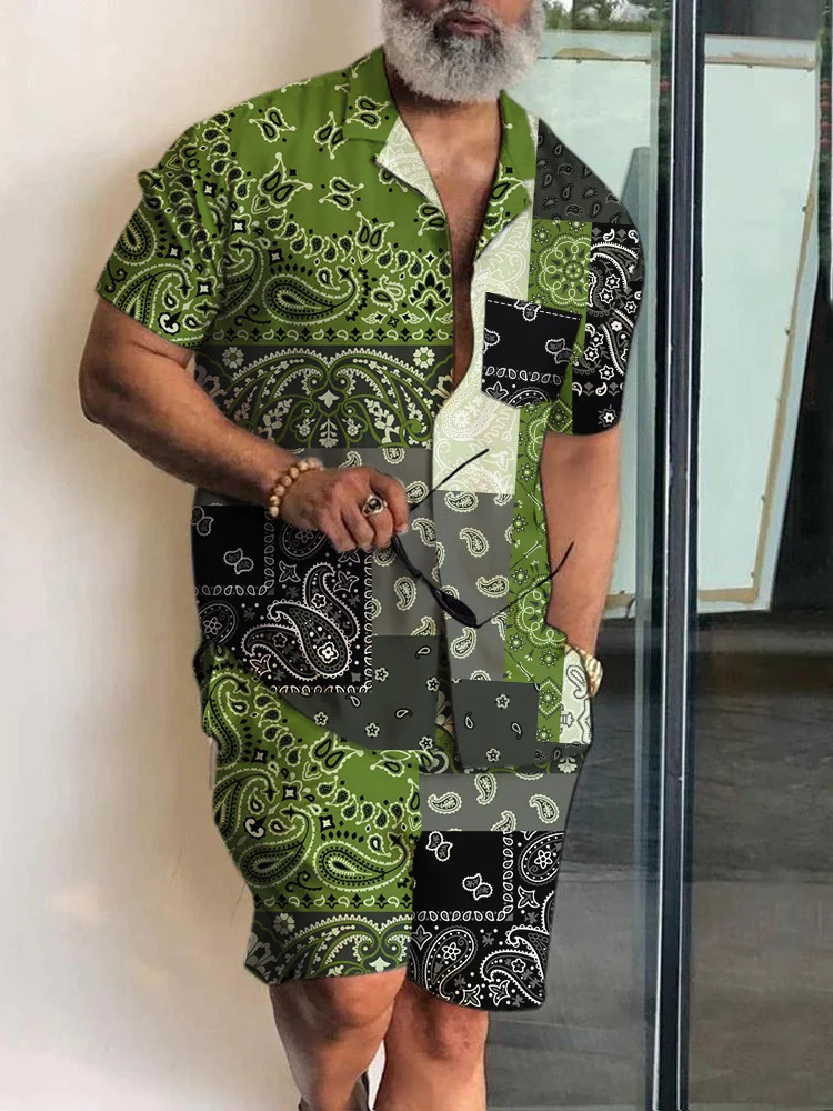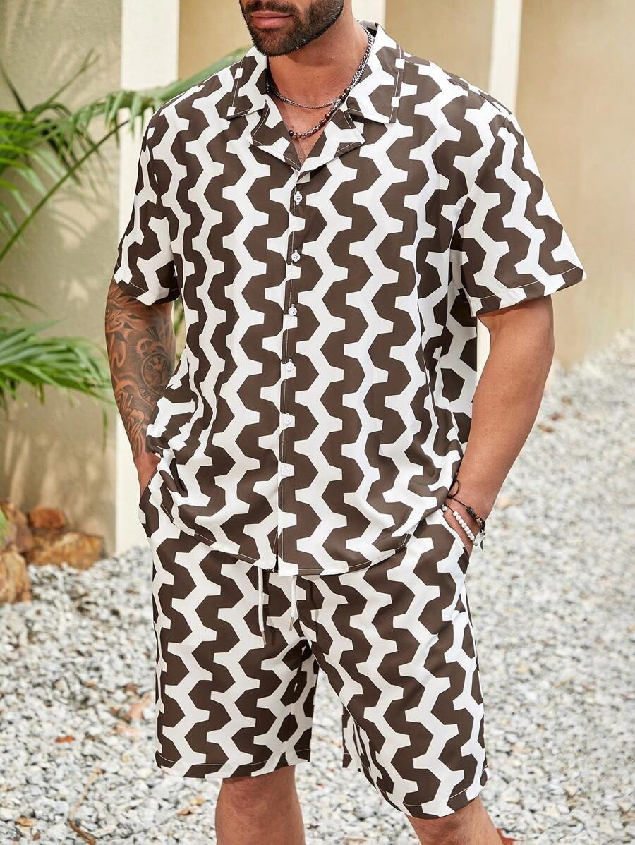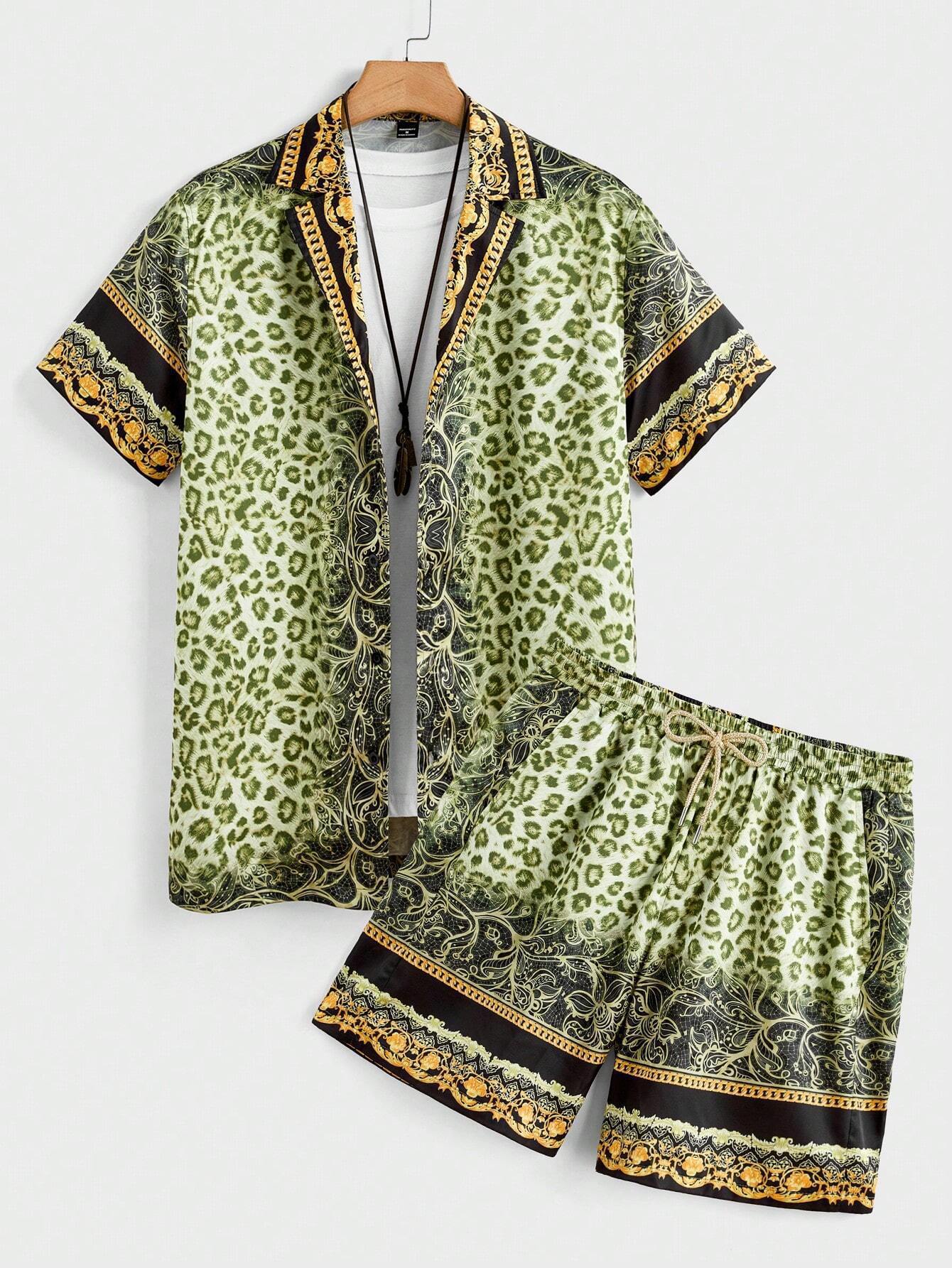 Мужские гавайские рубашки с коротким рукавом шорты набор горячих продаж трансграничный 3D-принт модный красочный узор для отдыха