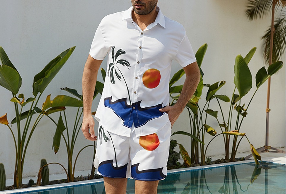 Главная страница > Мужские гавайские рубашки с коротким рукавом шорты набор горячих продаж трансграничный 3D-принт модный красочный узор для отдыха