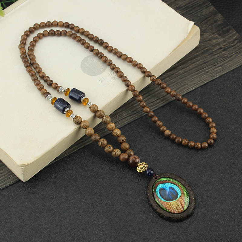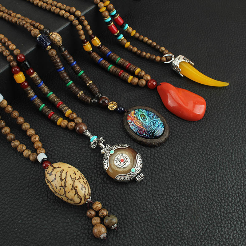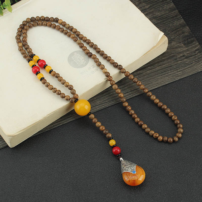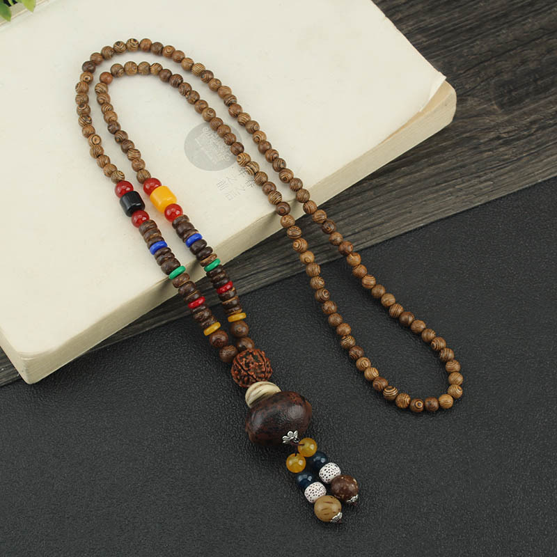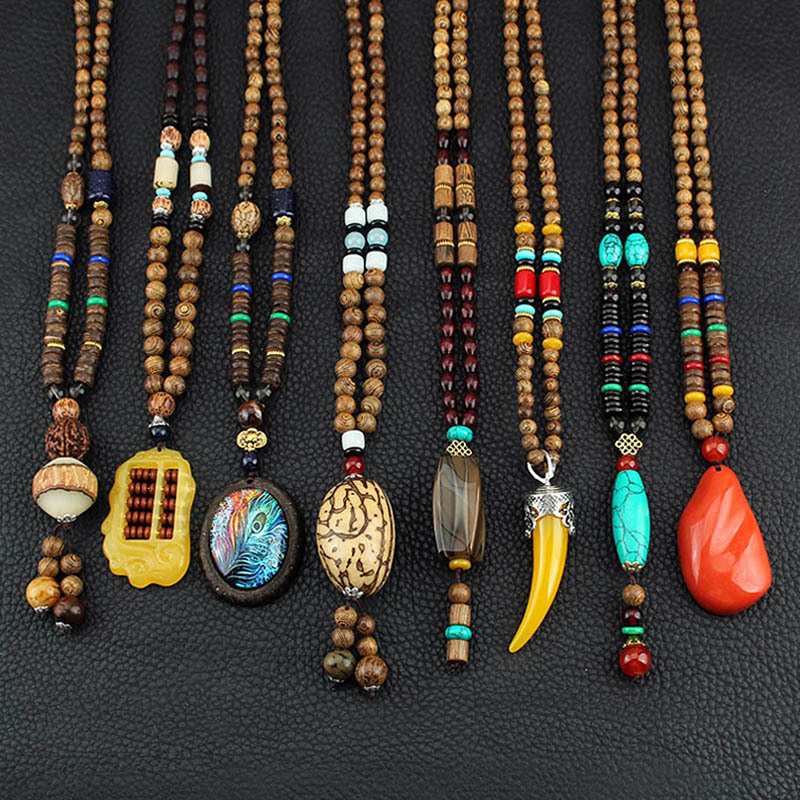 Главная страница > Easiest для мужчин и женщин, свитер в этническом стиле в стиле ретро, цепочка Bodhi, длинный деревянный кулон, бусины Будды, ожерелье, аксессуары для одежды, кулон