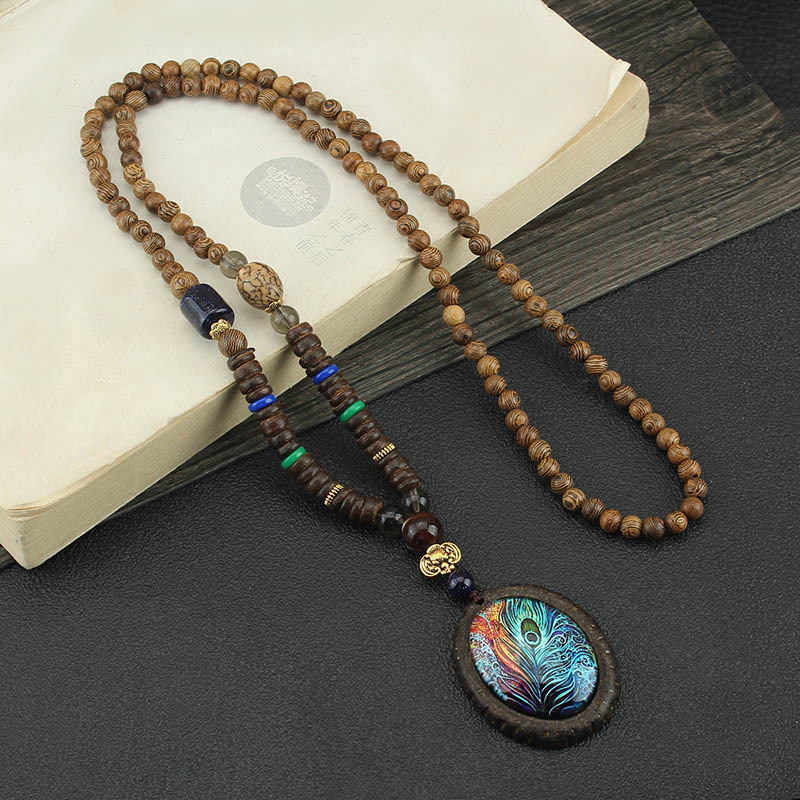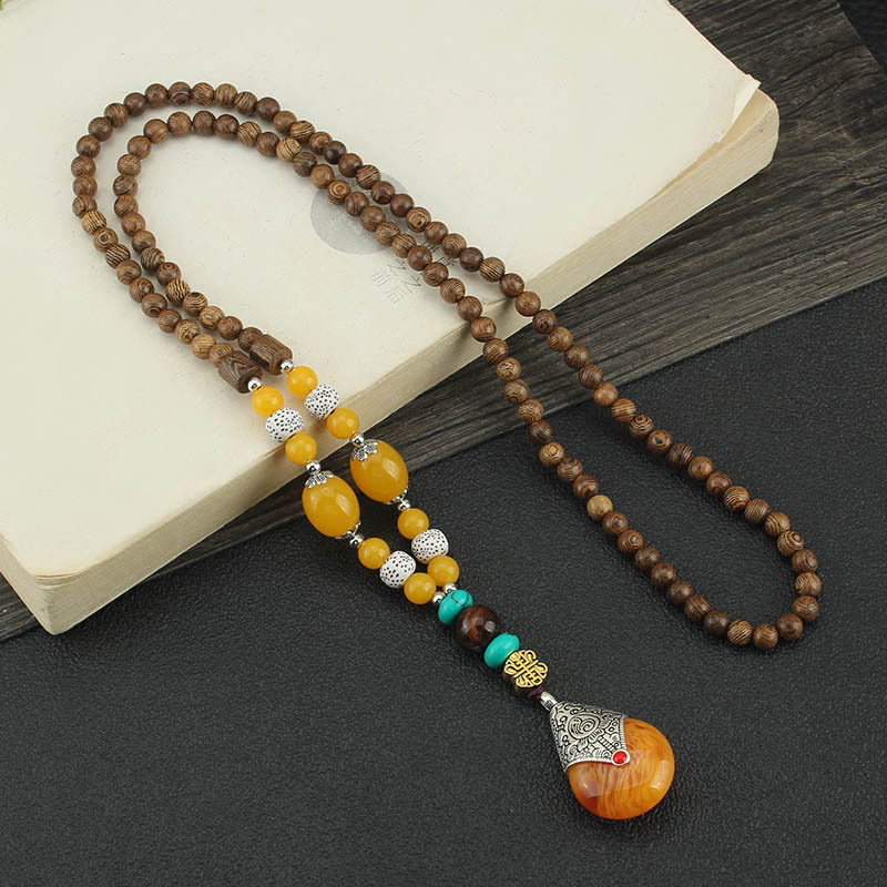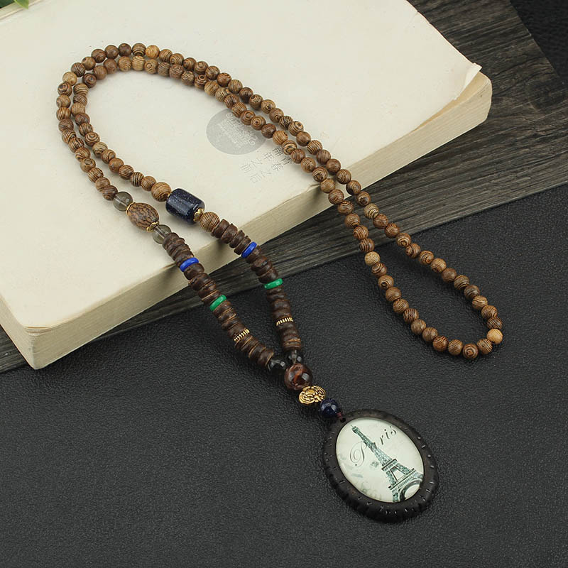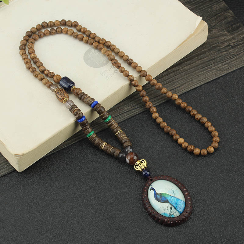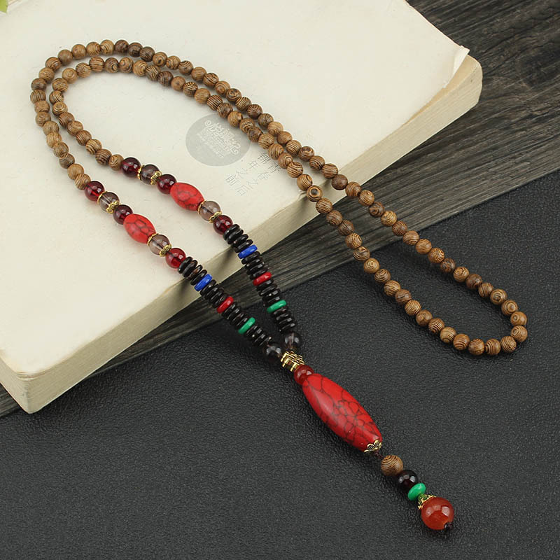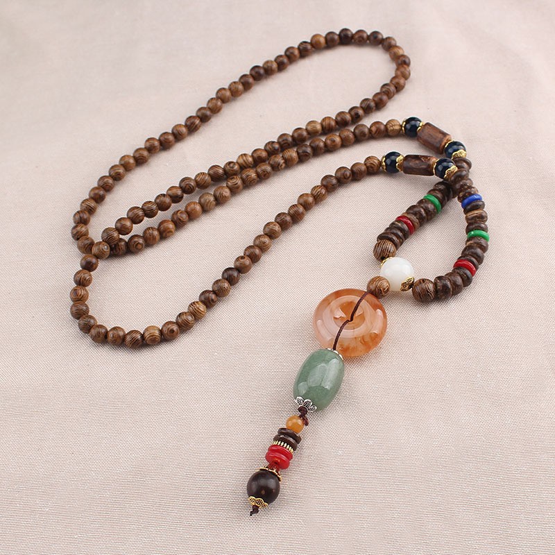 Главная страница > Easiest для мужчин и женщин, свитер в этническом стиле в стиле ретро, цепочка Bodhi, длинный деревянный кулон, бусины Будды, ожерелье, аксессуары для одежды, кулон