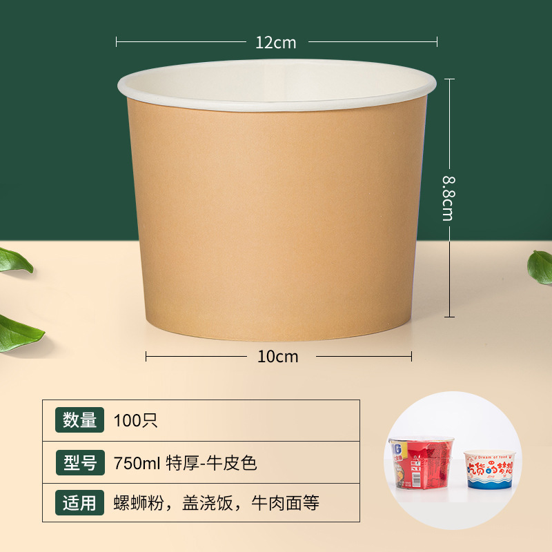 [Улучшенный True Color] Миска из крафт-бумаги, 750 мл, 100 шт.
