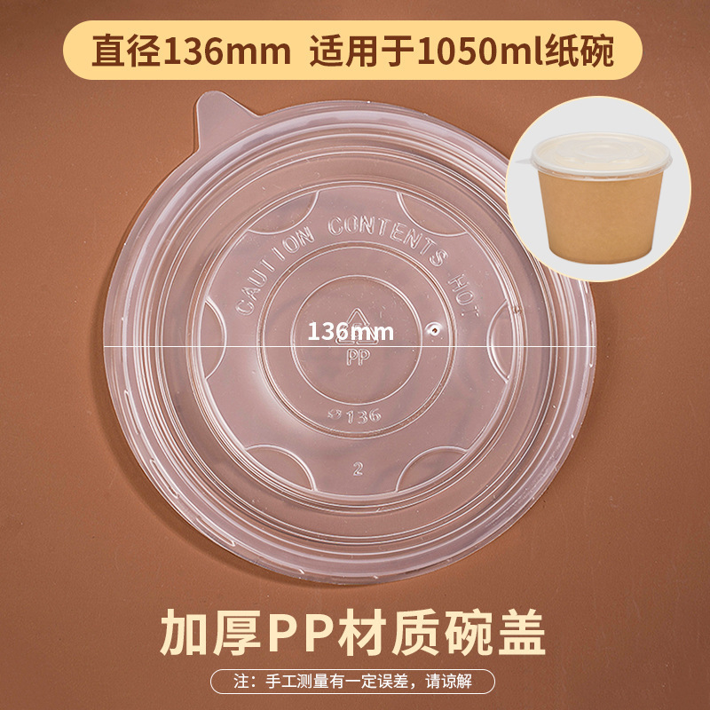 Крышка чаши диаметром 136 мм — [адаптирована к бумажной чаше емкостью 1050 мл] — 100 шт.
