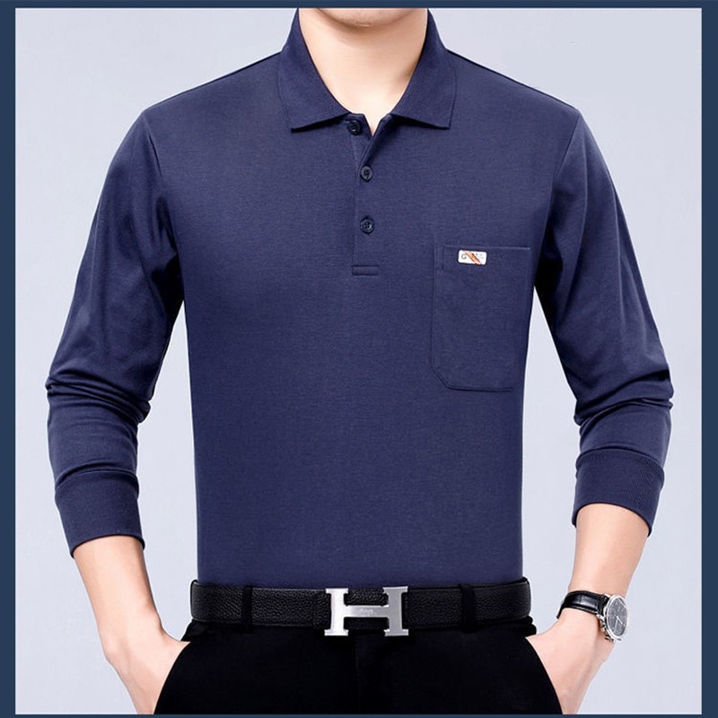 Главная страница > Мужская футболка с воротником и длинным рукавом для мужчин среднего и старшего возраста, весна 2025, свободного кроя, повседневная, из хлопка, дышащая и комфортная.