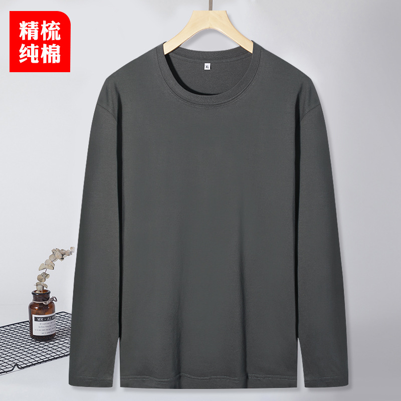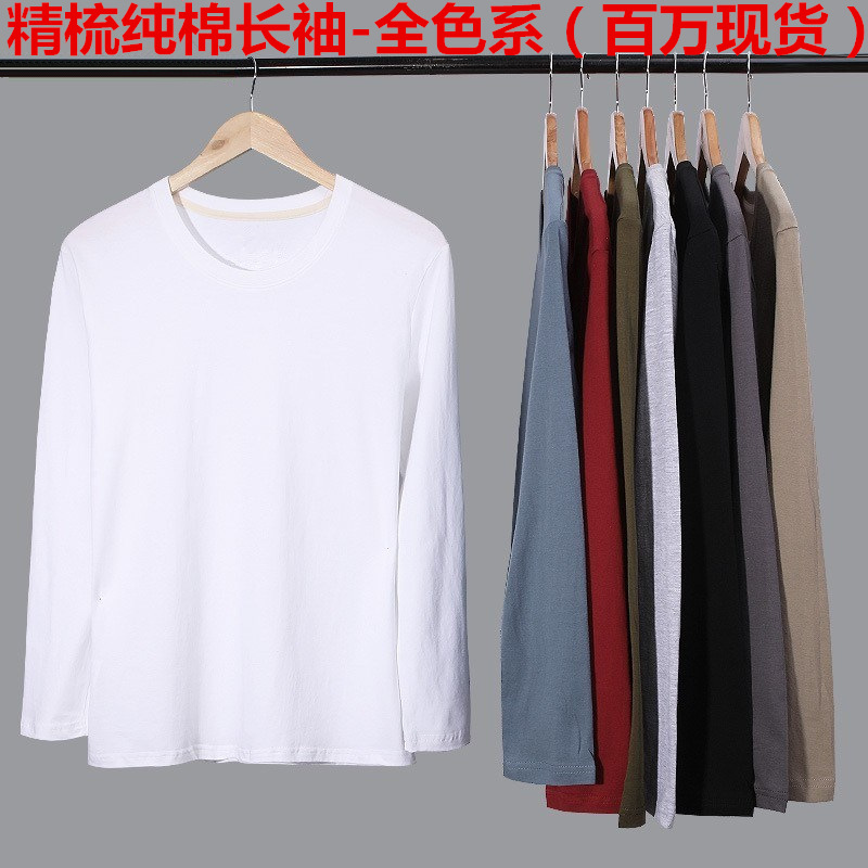 Главная страница > Футболка с длинными рукавами из чистого хлопка, Мужская Осенняя Базовая рубашка, однотонная Белая пустая чистая версия, осенняя одежда, свободная легкая версия с круглым вырезом, Топ