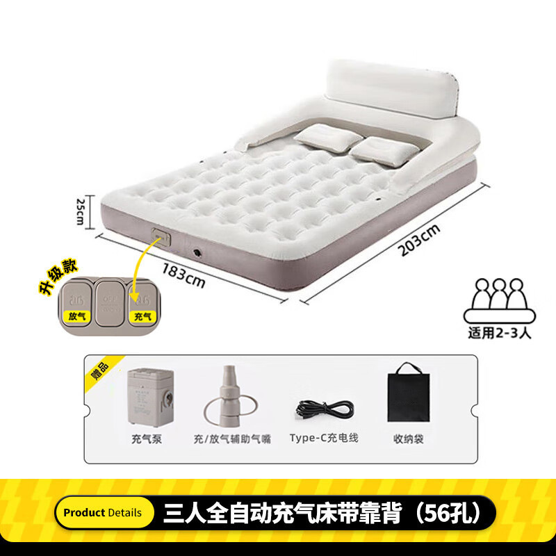 - [Со спинкой] Расширенная двойная Автоматическая надувная кровать (встроенный воздушный насос)