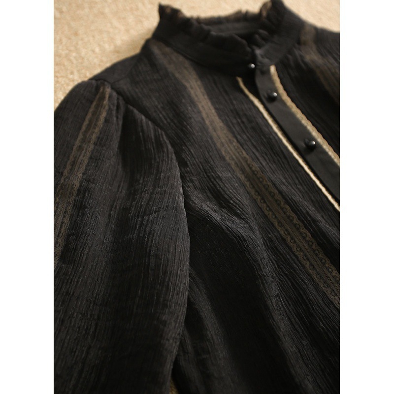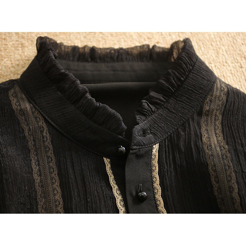 Главная страница > Кружевная отделка с рюшами в французском стиле, небольшой воротник-стойка, двухслойный дизайн, однобортная женская рубашка с длинными рукавами, новая модель топа на раннюю осень 2025 года.