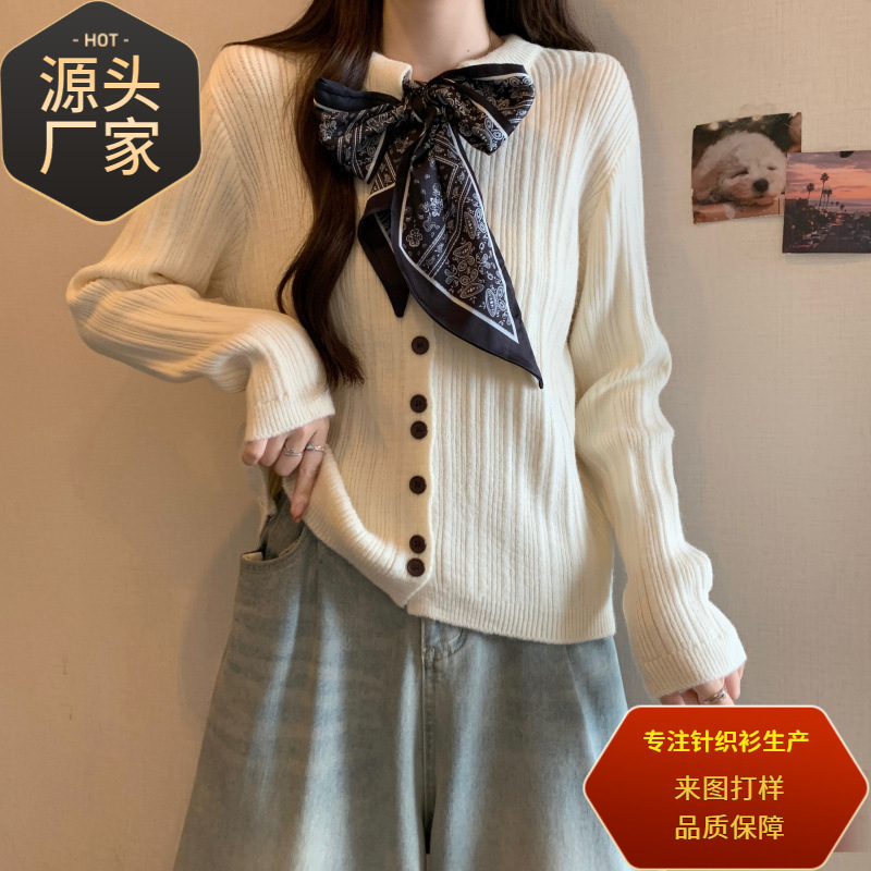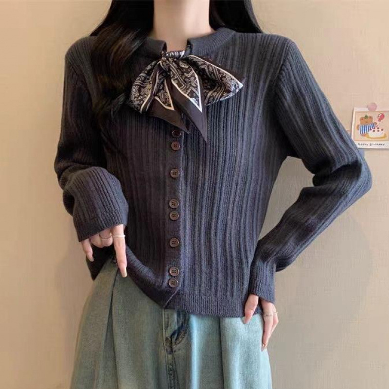 Главная страница > Шелковый шарф на шнуровке в стиле ретро, трикотаж с длинными рукавами для женщин, осенне-зимний новый вязаный кардиган с круглым вырезом и длинными рукавами