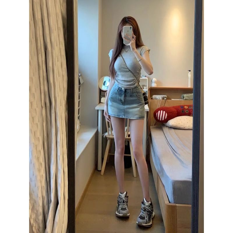Главная страница > Ретро горячая девушка джинсовая короткая юбка девушка маленькая летняя новая полоса с внутренней подкладкой юбка юбка бедра
