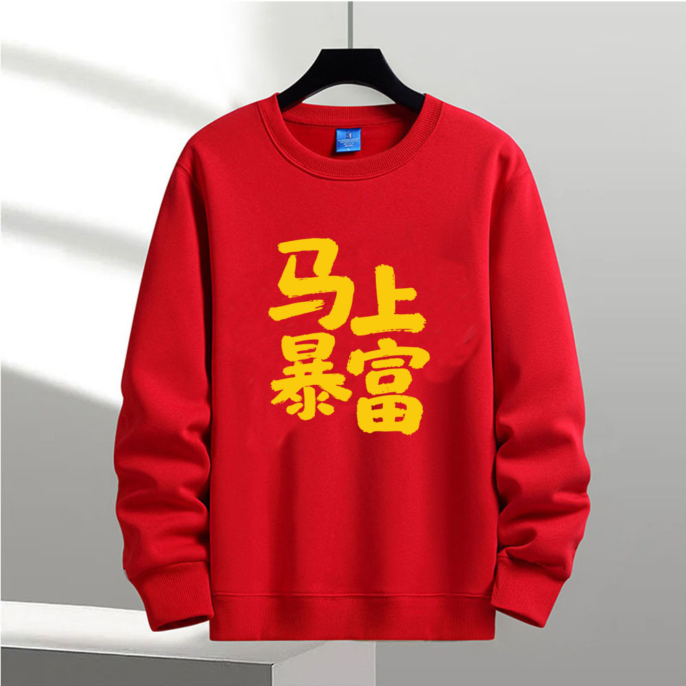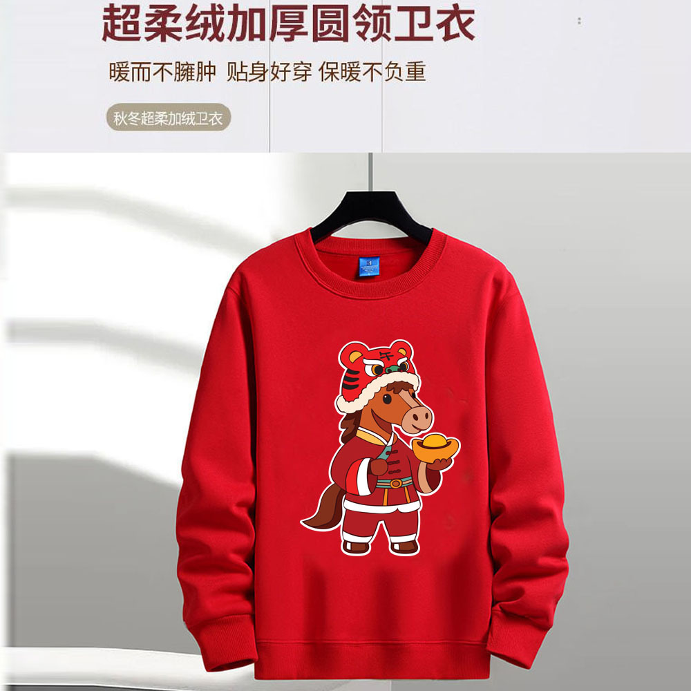 Мужская красная толстовка в китайском стиле, новая модель 2026 года, одежда на год Лошади, базовый слой, на флисовой подкладке, топ для осени и зимы к Новому году