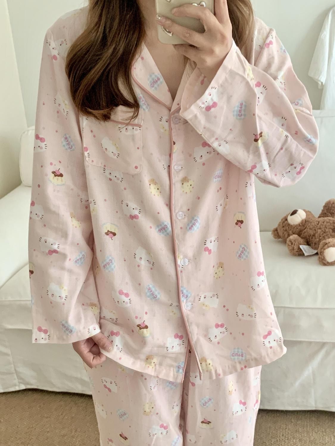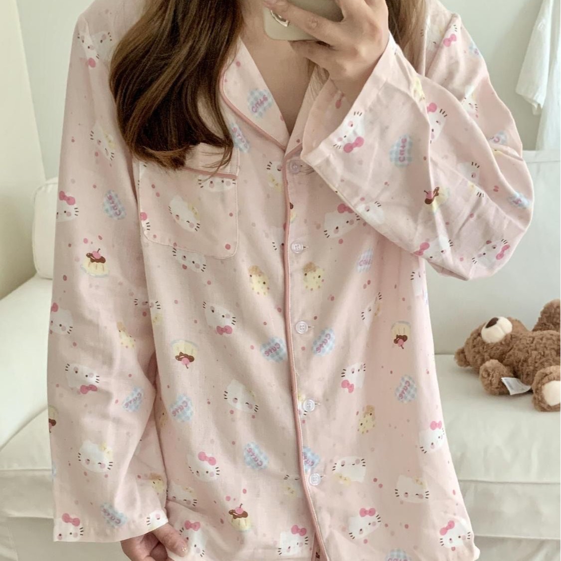 Главная страница > Женские пижамы с розовым котом из мультфильма, весенние и осенние брюки с длинными рукавами, популярное студенческое общежитие в корейском стиле, повседневная домашняя одежда интернет-знаменитостей
