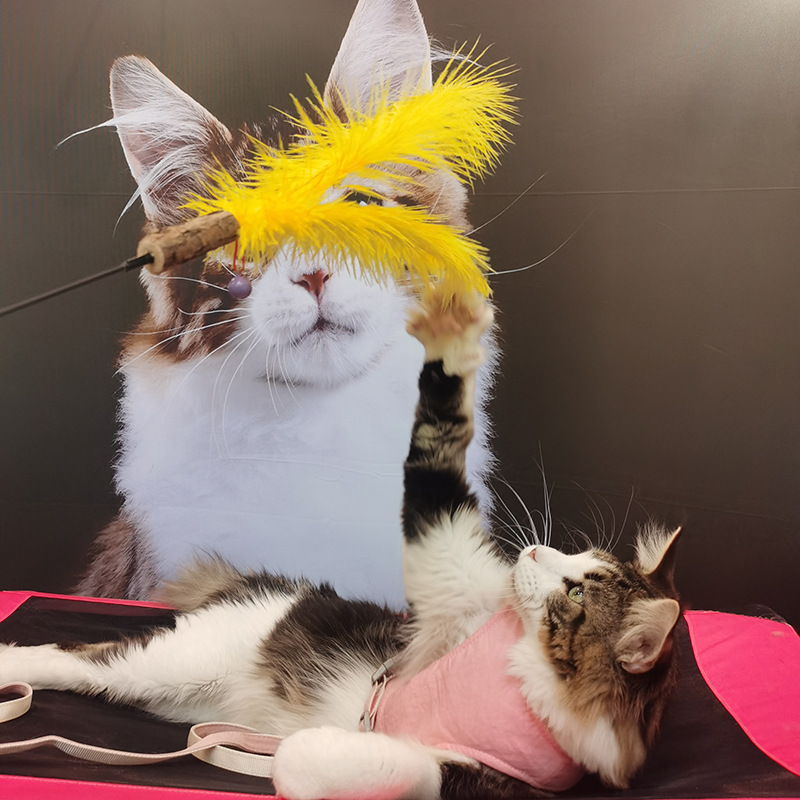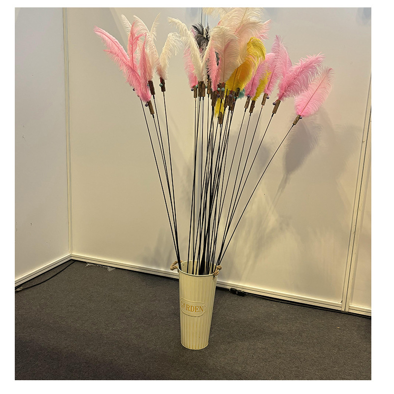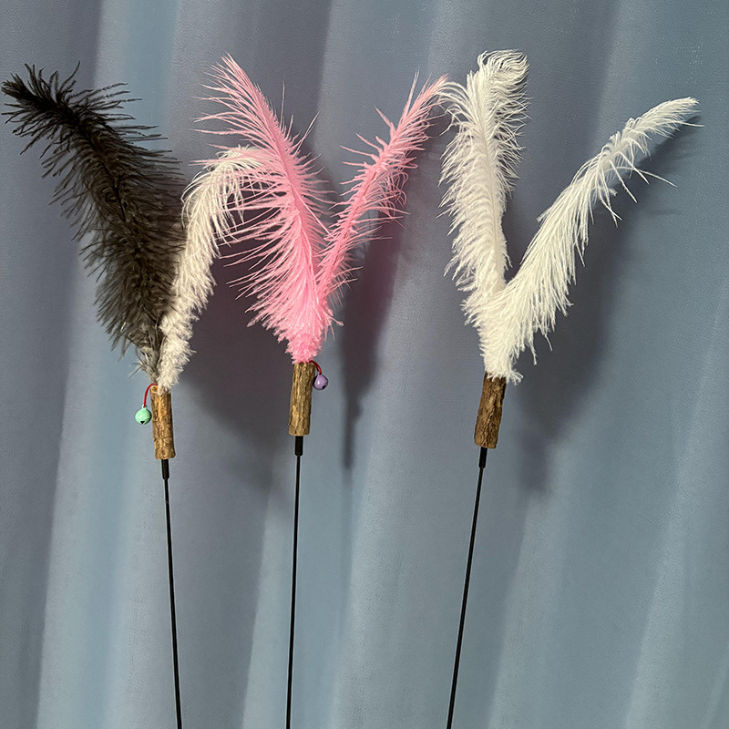 Главная страница > Интерактивная игрушка для кошек с удлиненными страусиными перьями, устойчивая к царапинам, с деревянным колокольчиком на длинной ручке и крупными перьями.