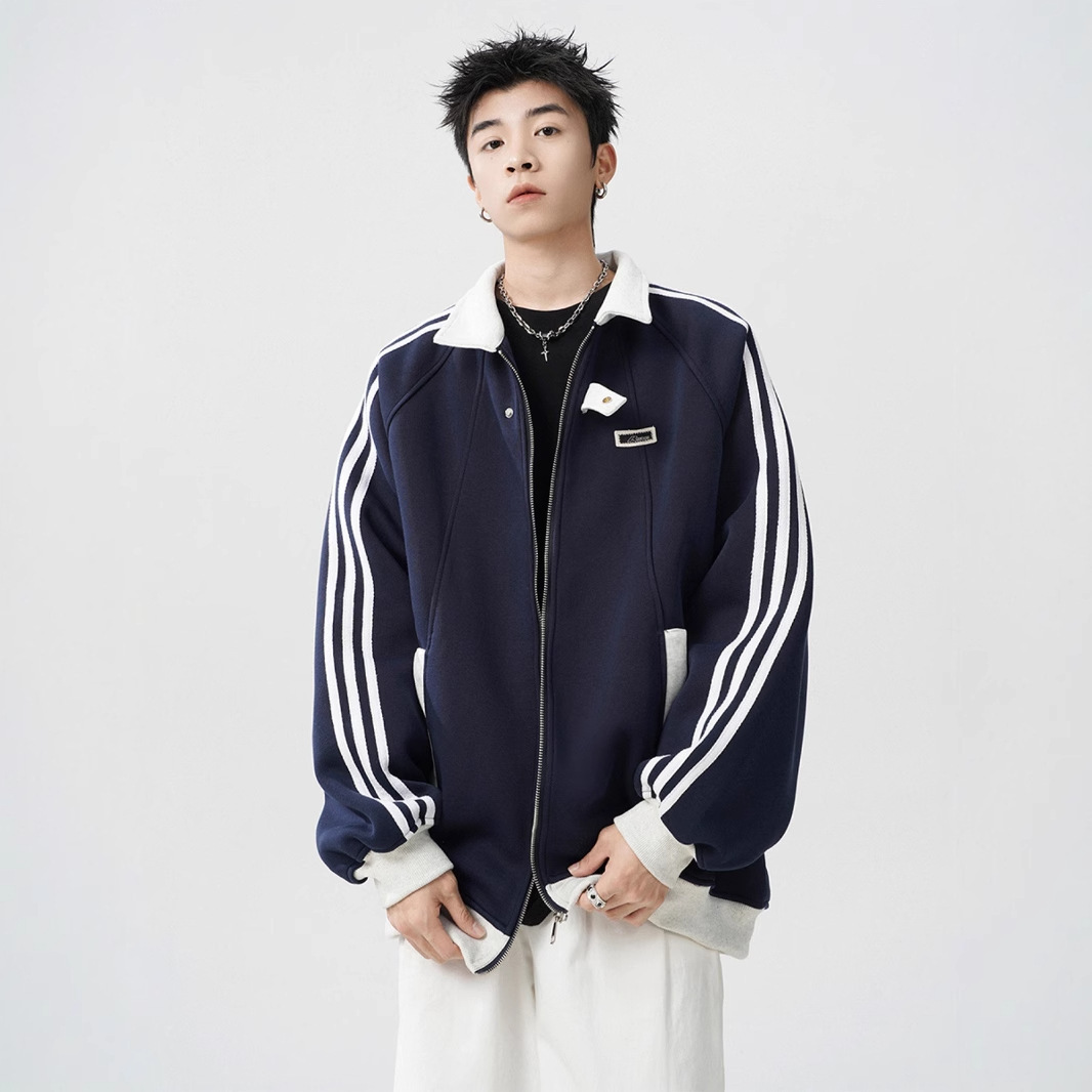 Главная страница > Американский полосатый повседневный кардиган свитер мужской осенний и зимний новый стиль бренда школы стиль пара дикая спортивная куртка куртка