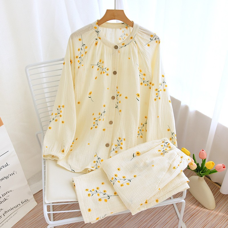 Главная страница > Новые китайские свободные летние женские хлопчатобумажные марлевые пижамы можно носить тонкие брюки с короткими рукавами