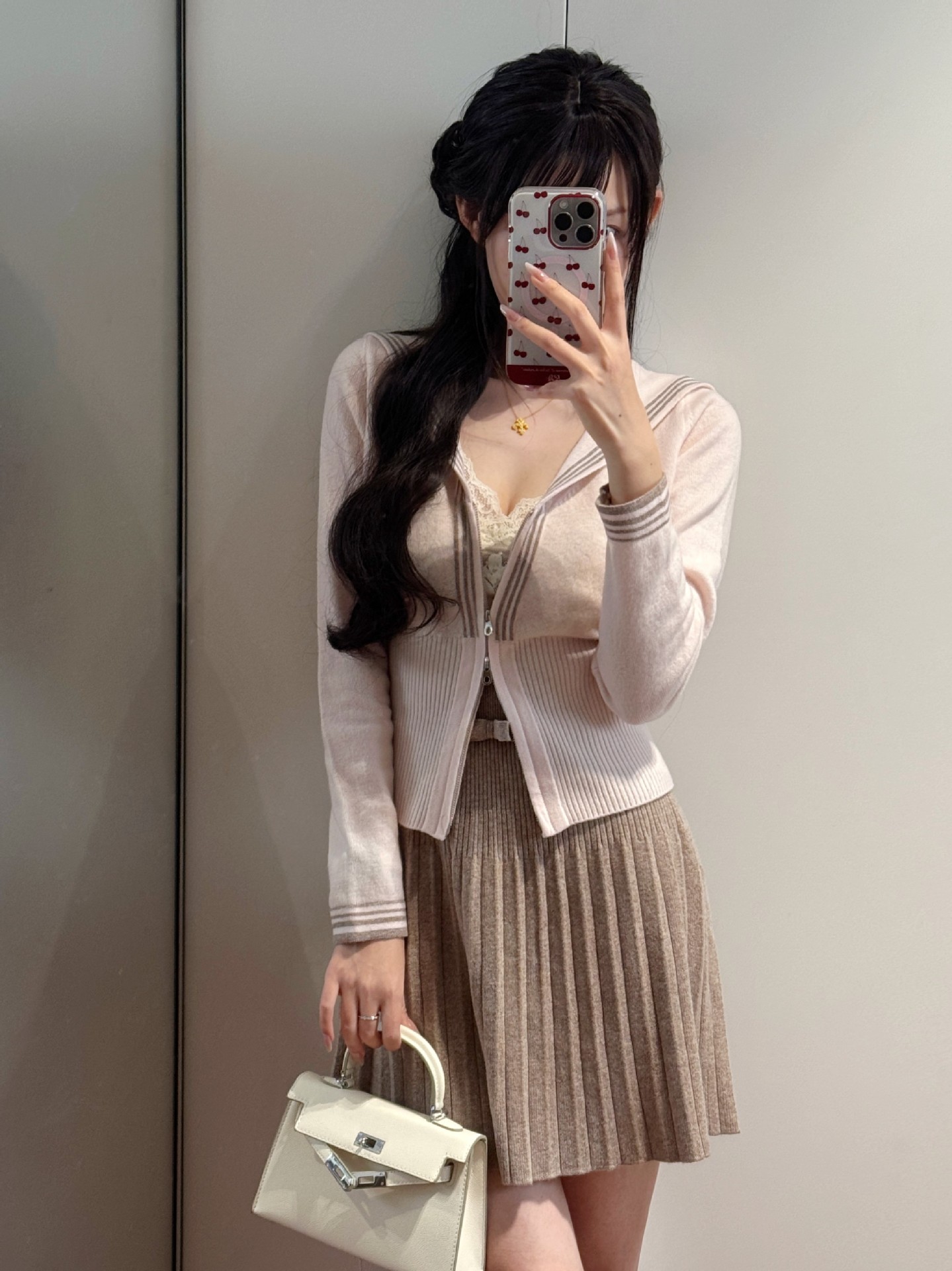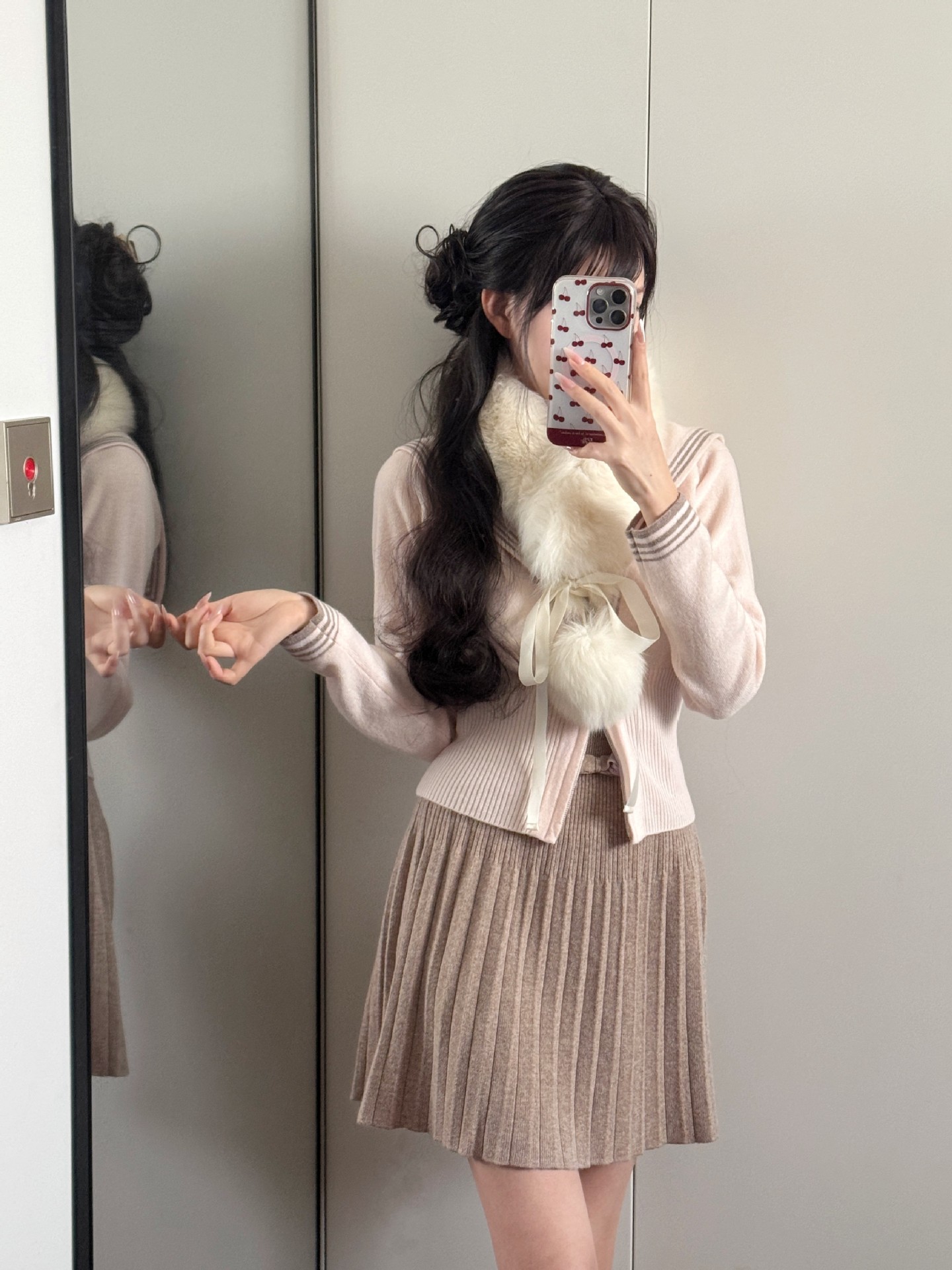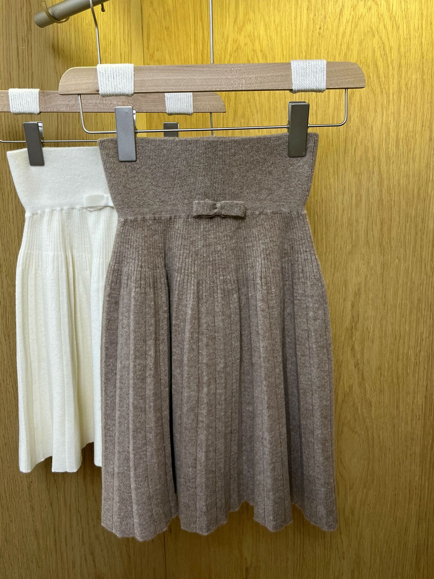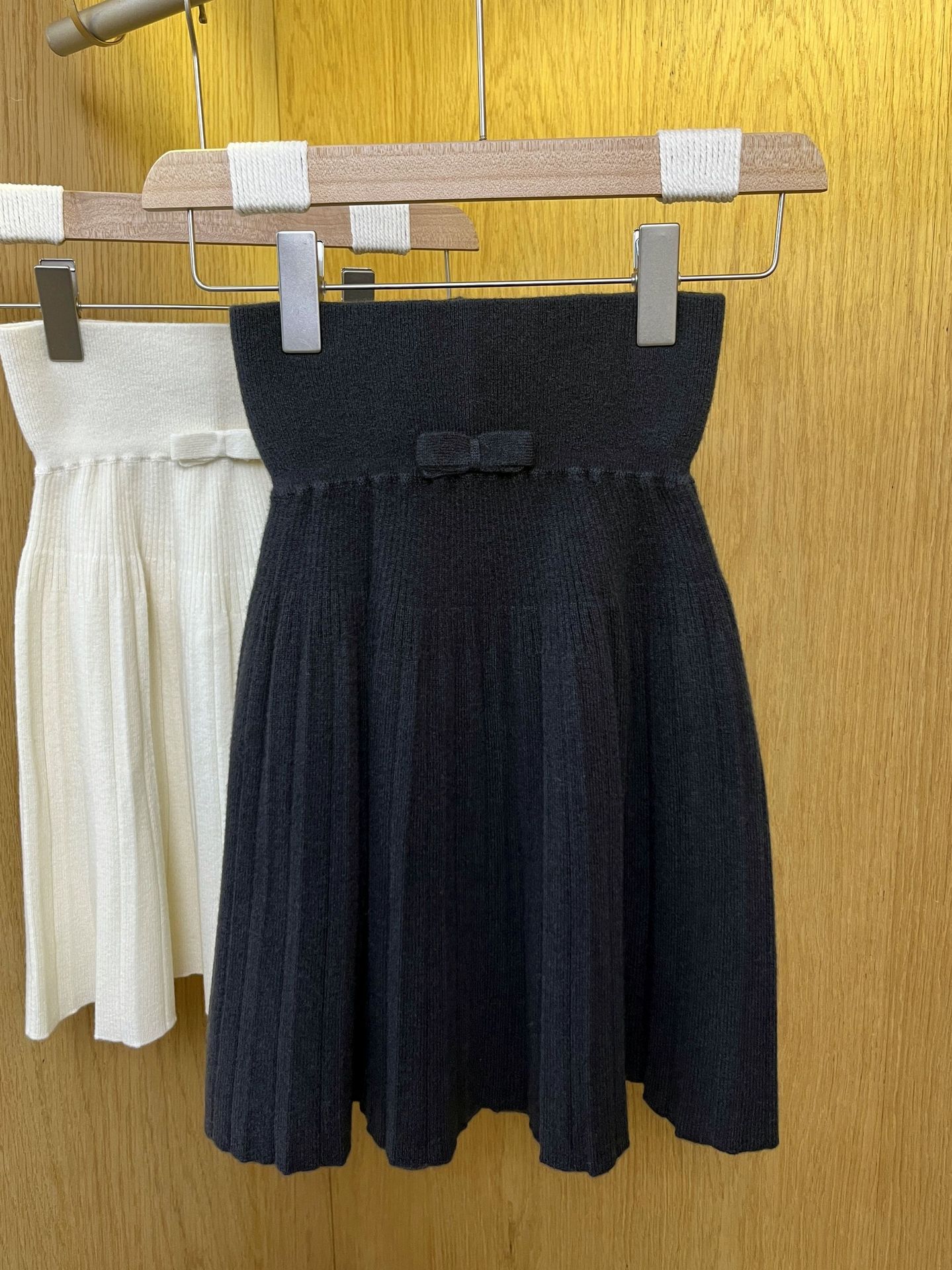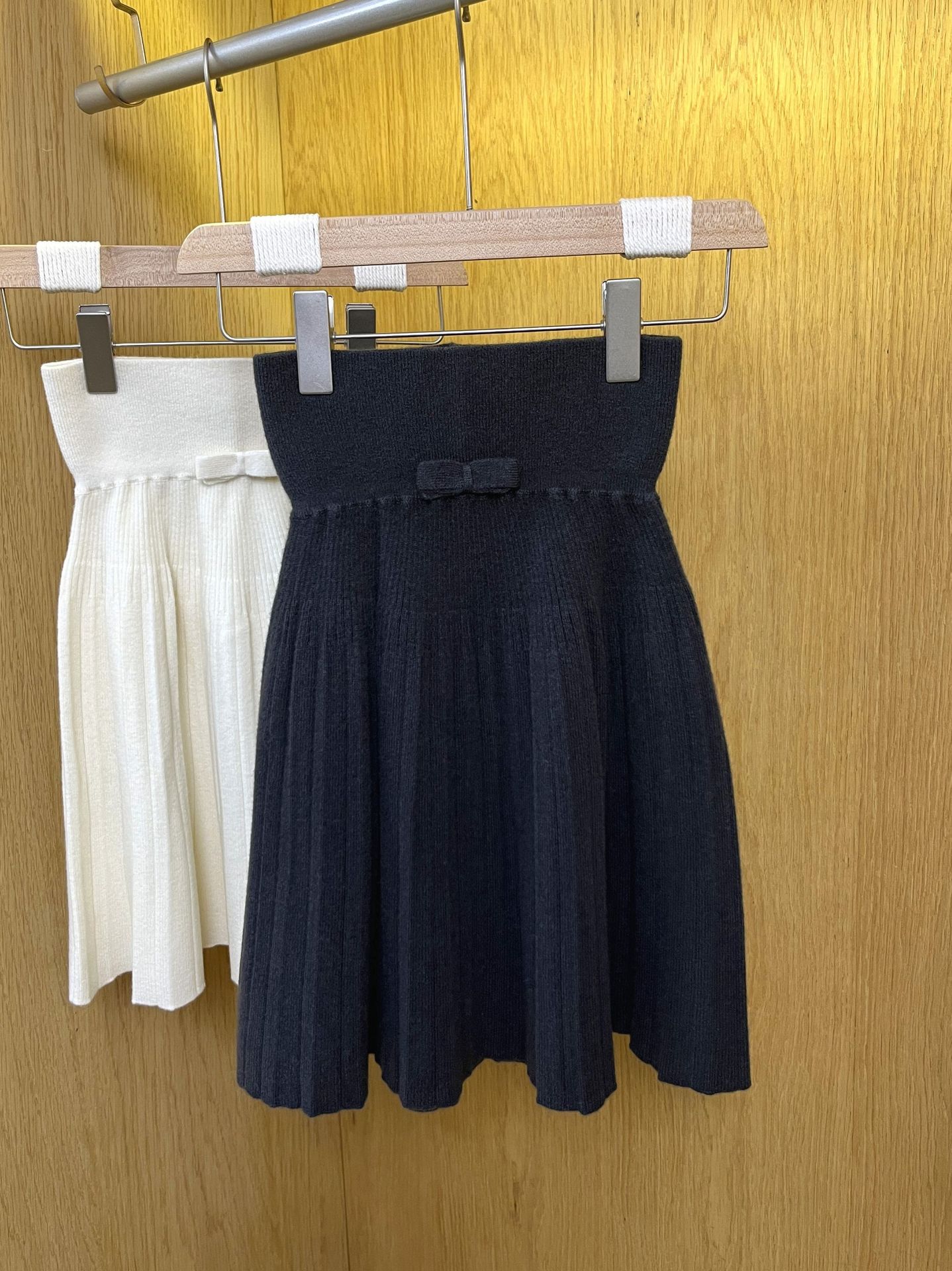 Главная страница > Весенний и Осенний трикотаж с бантиками с высокой талией юбка шерстяная плиссированная юбка 2025 новая тонкая юбка