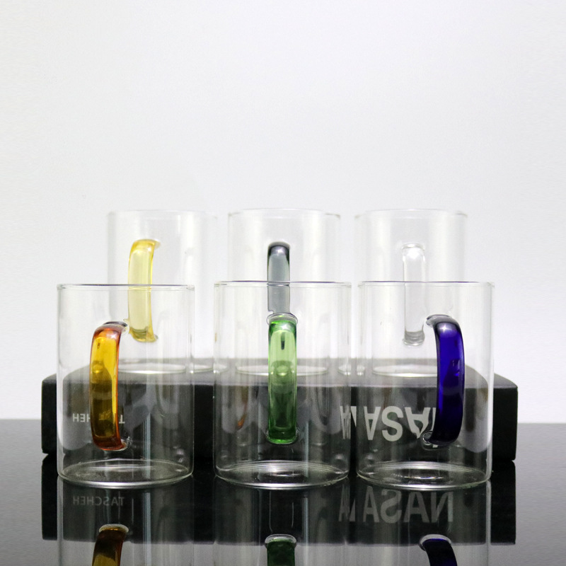 Главная страница > Набор прозрачных стеклянных чашек для домашнего использования с ручкой, чашка для напитков, чайная чашка, чашка для молока, разноцветная кофейная чашка, термостойкая из высококачественного боросиликатного стекла.