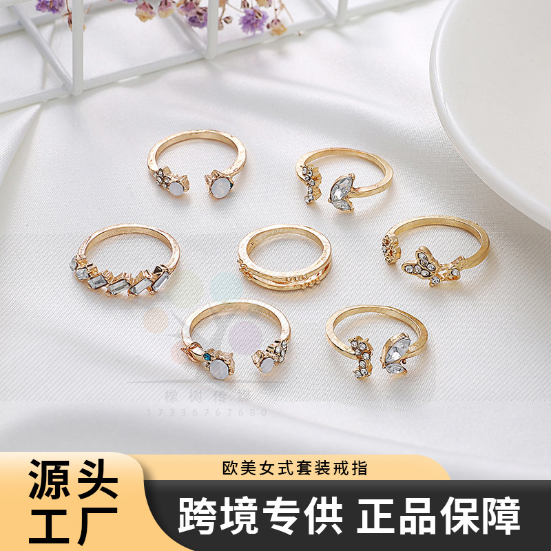 Оптом ювелирные украшения: кольца с бриллиантами в европейско-американском стиле, золотые кольца-бабочки, ретро-аксессуары для девочек, кристаллические украшения.
