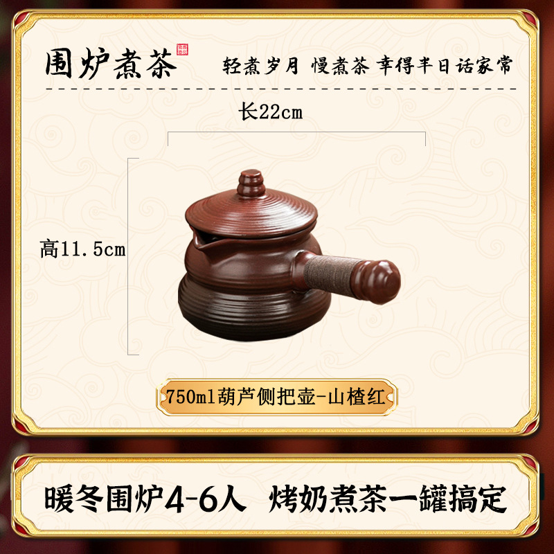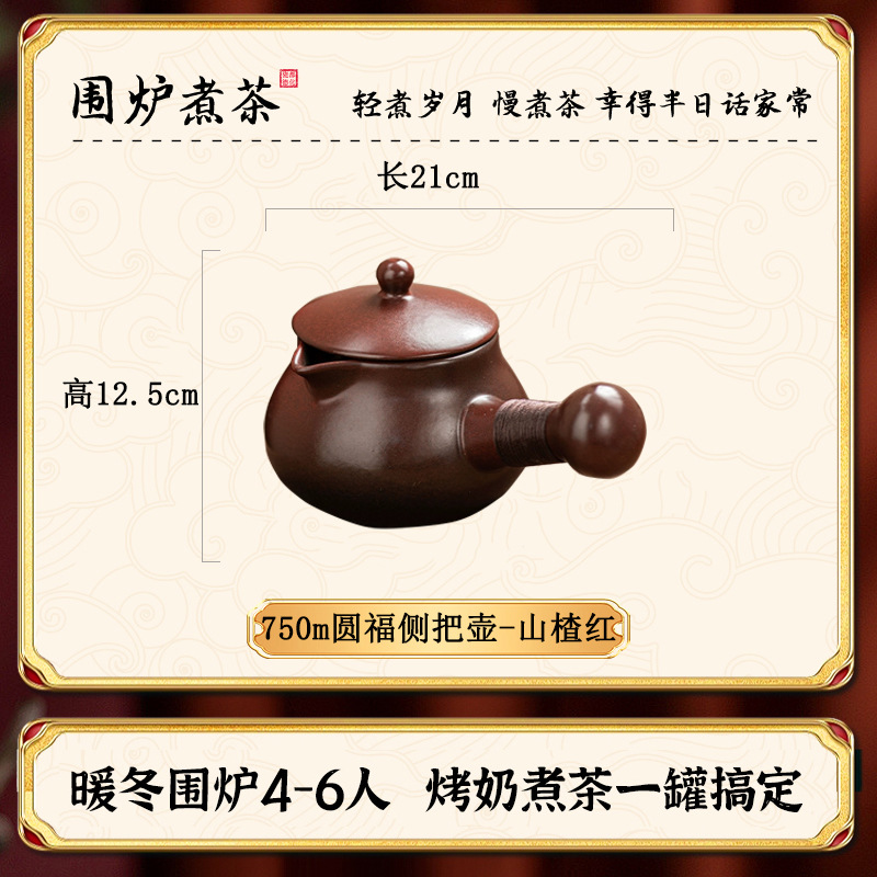 Боярышник красный 750 мл Горшок Yuanfu с боковой ручкой + керамическая крышка
