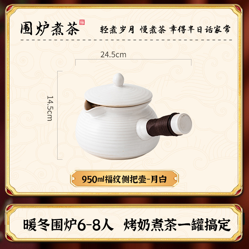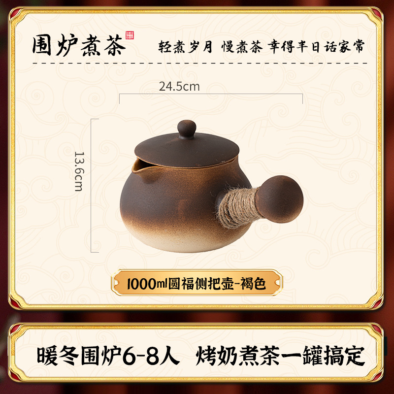 Главная страница > Чайник большой емкости с крышкой, керамический горшок с боковой ручкой, молочный горшок для заваривания чая на открытом воздухе, молочный горшок для барбекю.