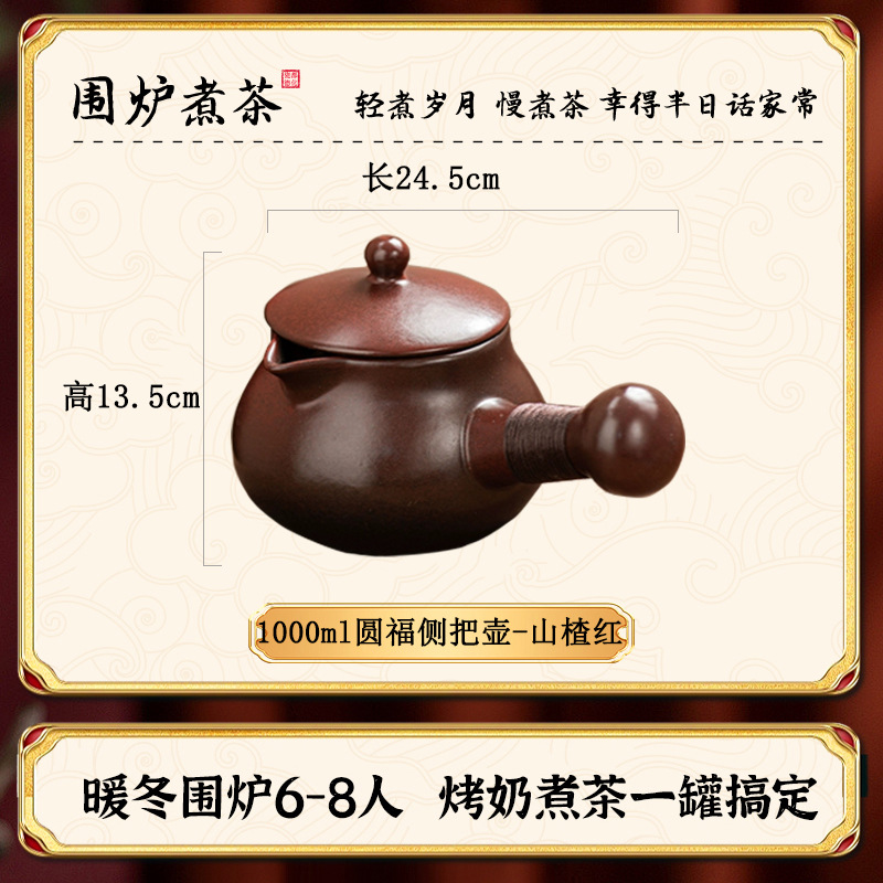 Боярышник красный 1000 мл горшок с боковой ручкой Yuanfu + керамическая крышка