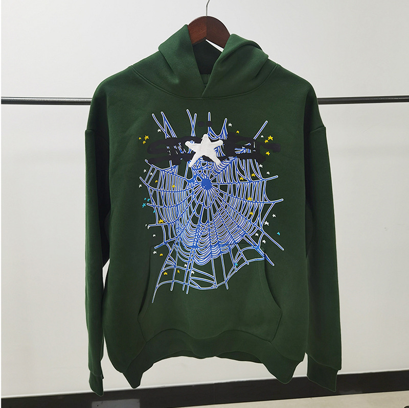 Главная страница > Внешняя торговля Оригинальный тяжелый вес 450G торт бархат толстый толстовка с пеной паутиной толстовка с капюшоном Sp5der hoodies