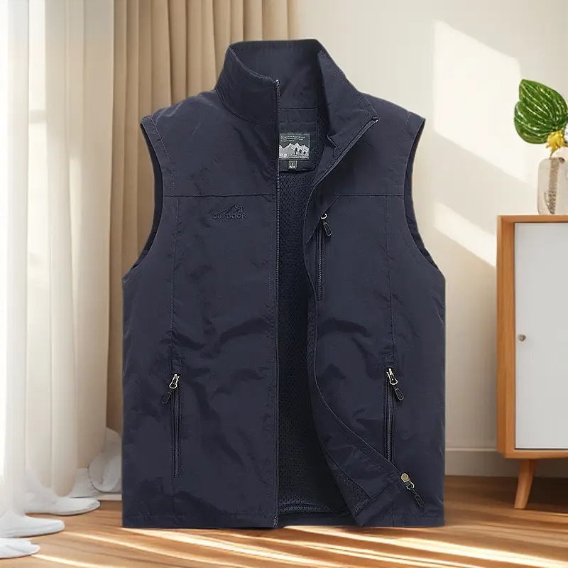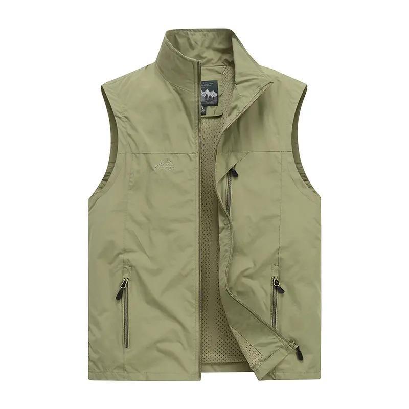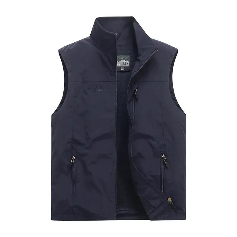 Весенние, летние и осенние мужские жилеты, повседневный воротник-стойка, спецодежда с несколькими карманами, уличные жилеты больших размеров, модные куртки.