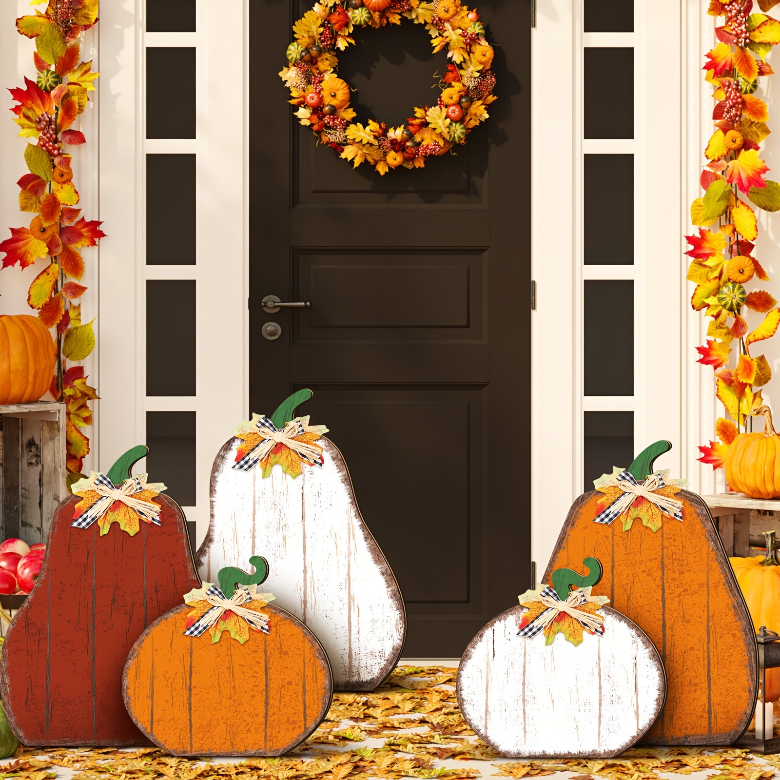 Главная страница > 5X украшения для дома на День Благодарения в стиле фермерского дома, осенние тыквы для крыльца, деревянные таблички с тыквой для урожая