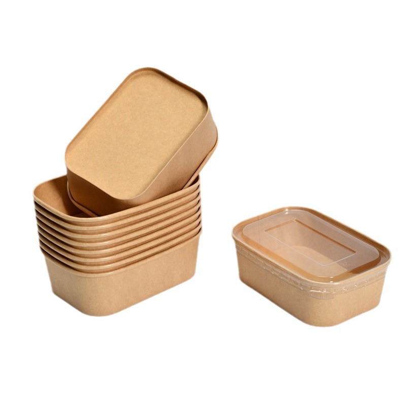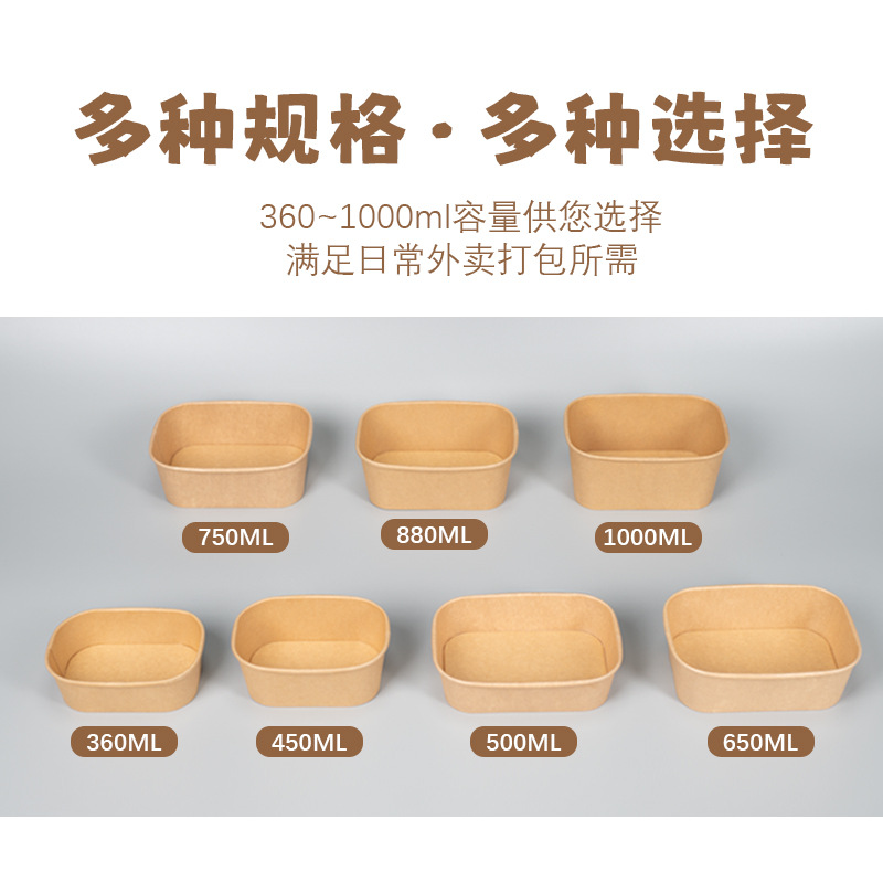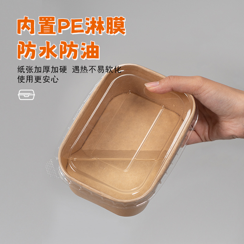 Главная страница > Одноразовые ланч-бокс утолщенный крафт-бумага квадратная вынос фаст-фуд упаковочная коробка домашняя крышка бумажная миска бенто салатная коробка
