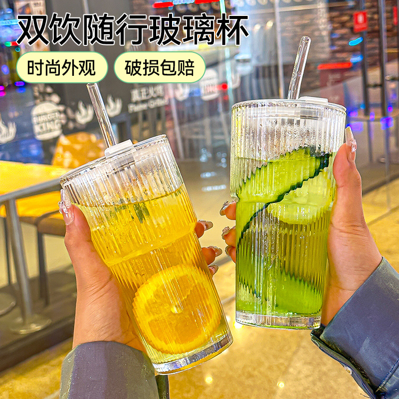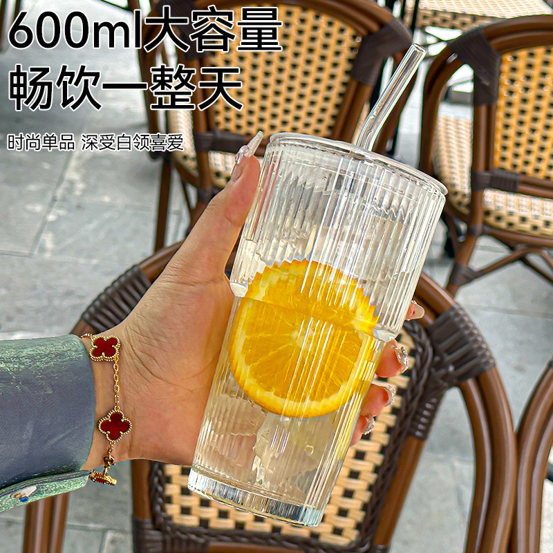 Главная страница > Высококачественная стеклянная чашка для напитков, чашка для сока для холодных напитков с крышкой, чашка с соломинкой, утолщенная прозрачная чашка для чая с молоком и колой в наличии