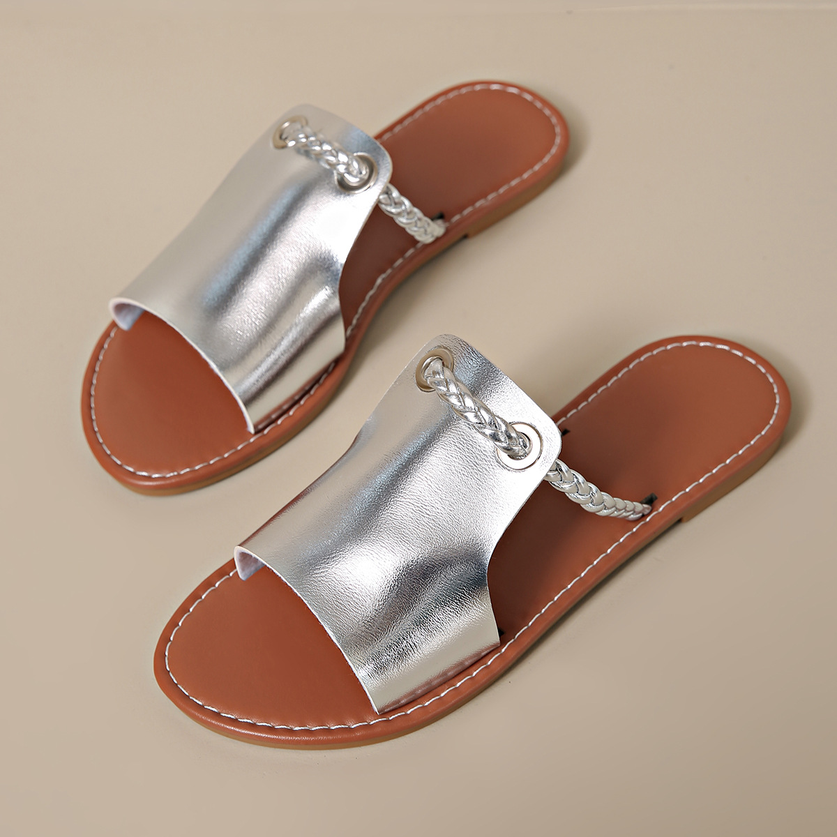 Главная страница > Внешняя торговля большой размер 2024 летние новые тапочки женские сплошной цвет тканые минималистские ежедневные пляжные тапочки