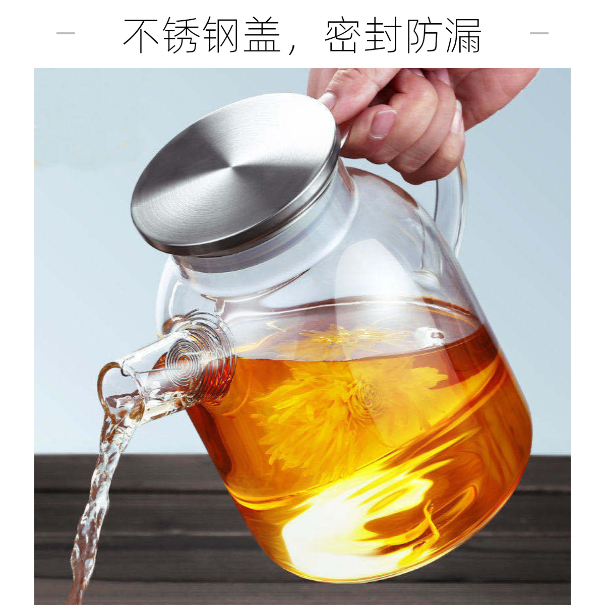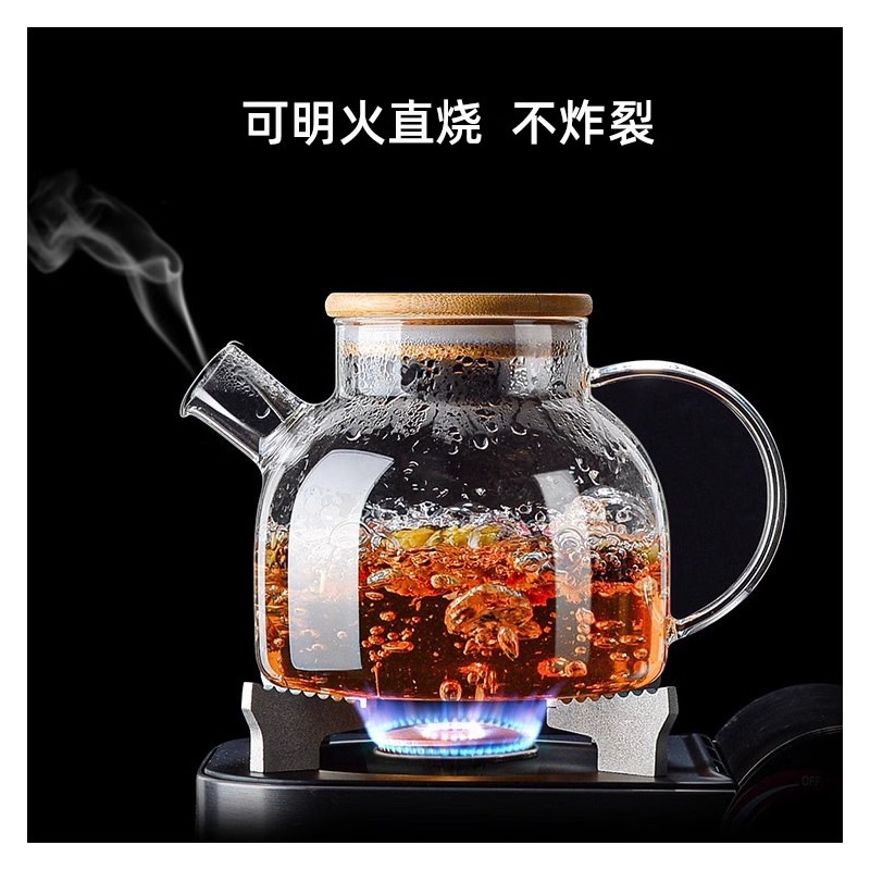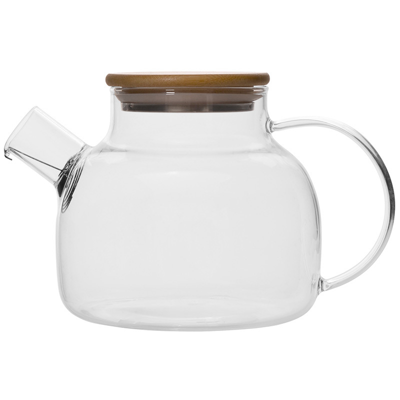 Классификация цветов: [Утолщенная модель] Чайник с бамбуковой крышкой объемом 1 л [утолщенное боросиликатное стекло, прямое открытое пламя]; Емкость: 1 л или более
