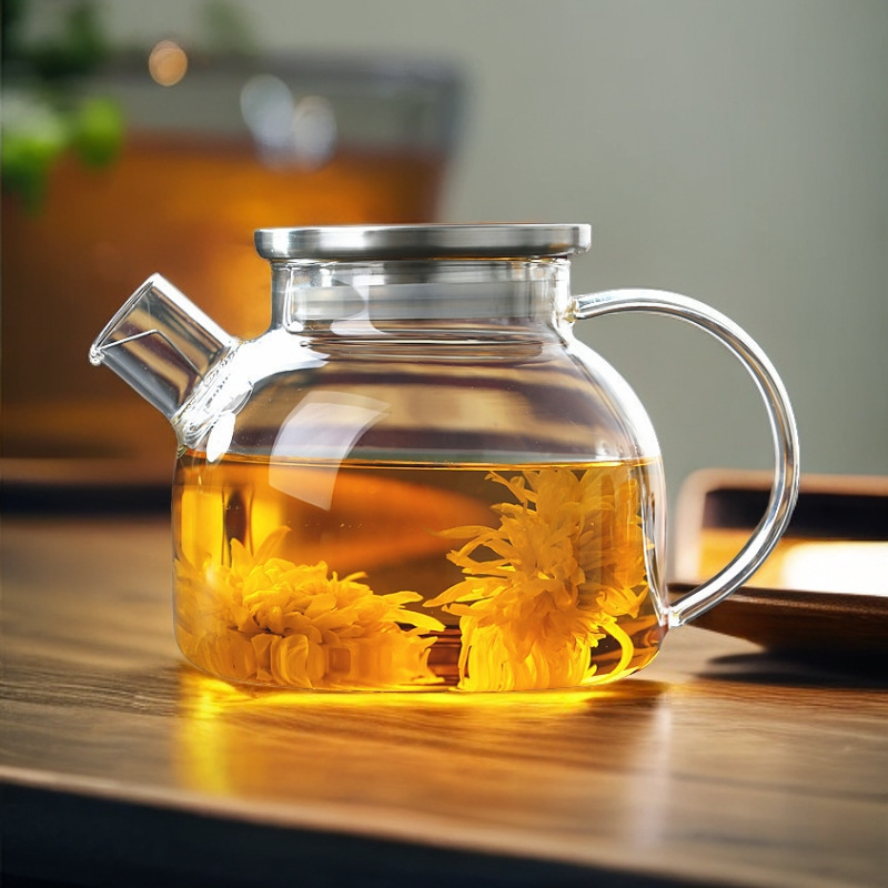 Главная страница > Стеклянный чайник для заваривания чая, бытовой чайник для холодной воды, электрическая керамическая плита с открытым пламенем, чайник с цветочным рисунком.