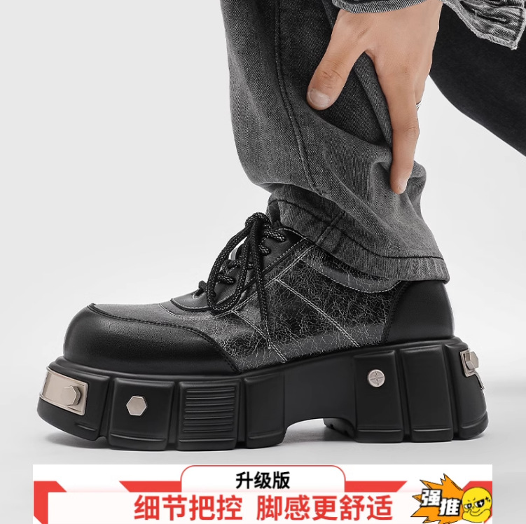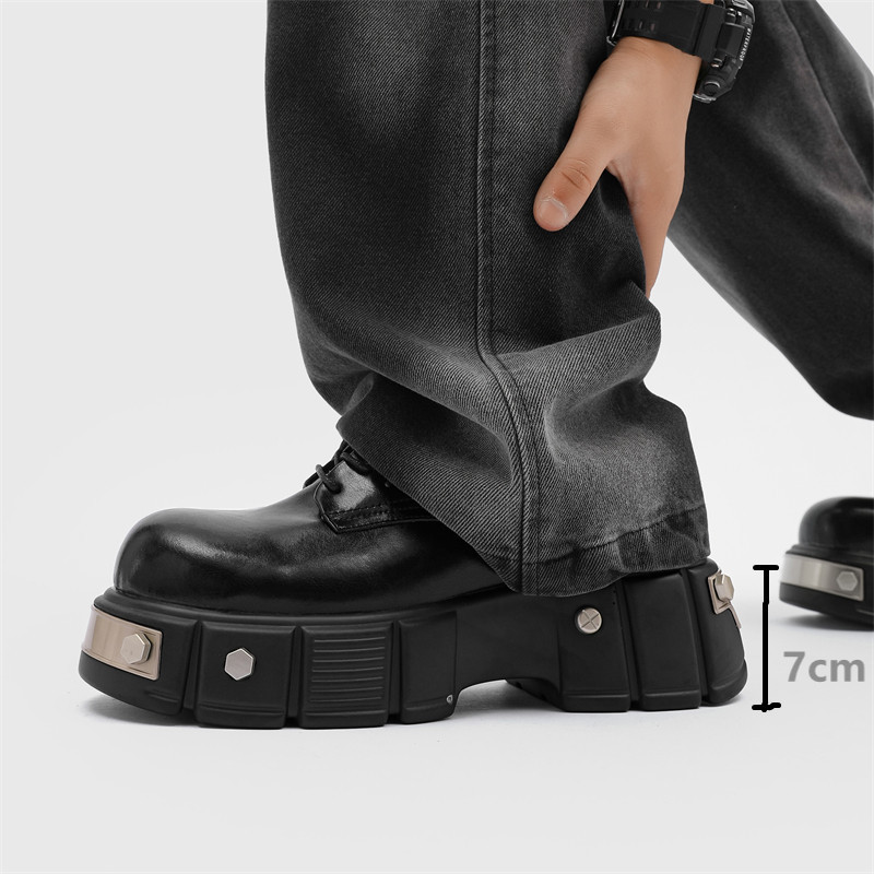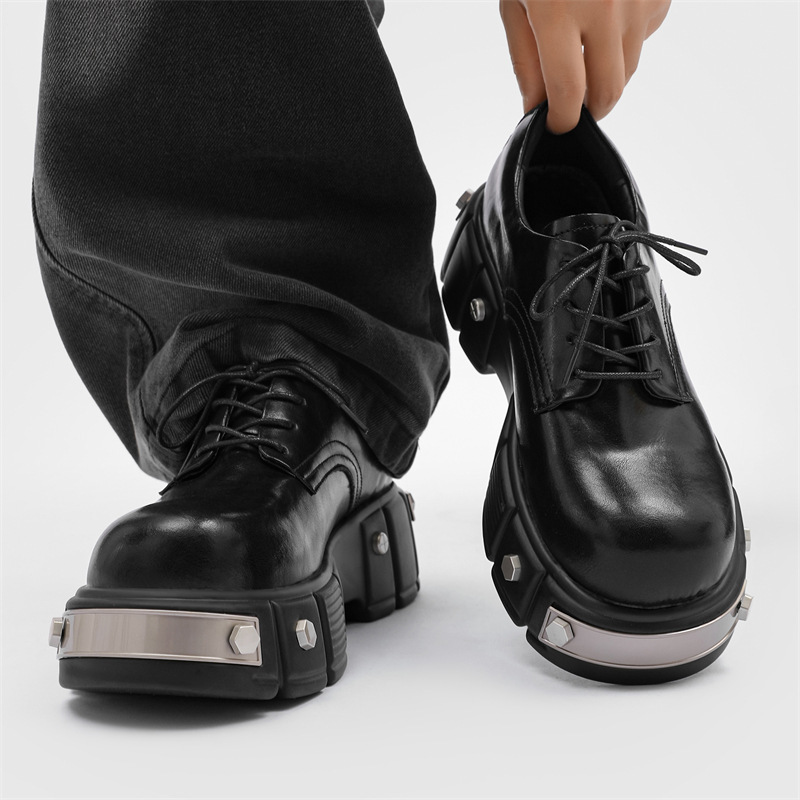 Главная страница > Мужские туфли дерби с увеличением высоты на 7 см, функциональные туфли с круглым носком и железным носком, британские туфли с большим носком на толстой подошве в стиле ретро.