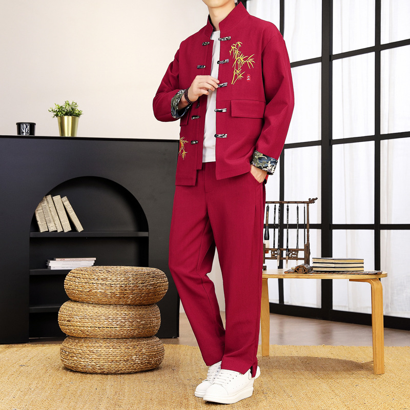 Главная страница > Костюм Тан в национальном стиле, модный мужской костюм с длинными рукавами, костюм Чжуншань, китайский стиль, классическая китайская пряжка