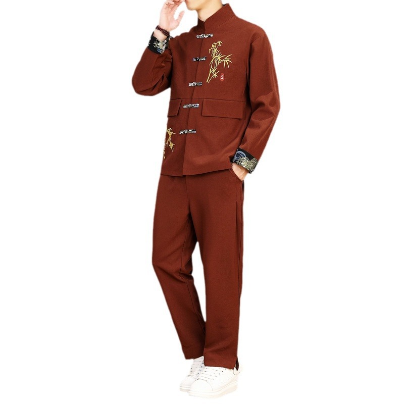 Костюм Тан в национальном стиле, модный мужской костюм с длинными рукавами, костюм Чжуншань, китайский стиль, классическая китайская пряжка